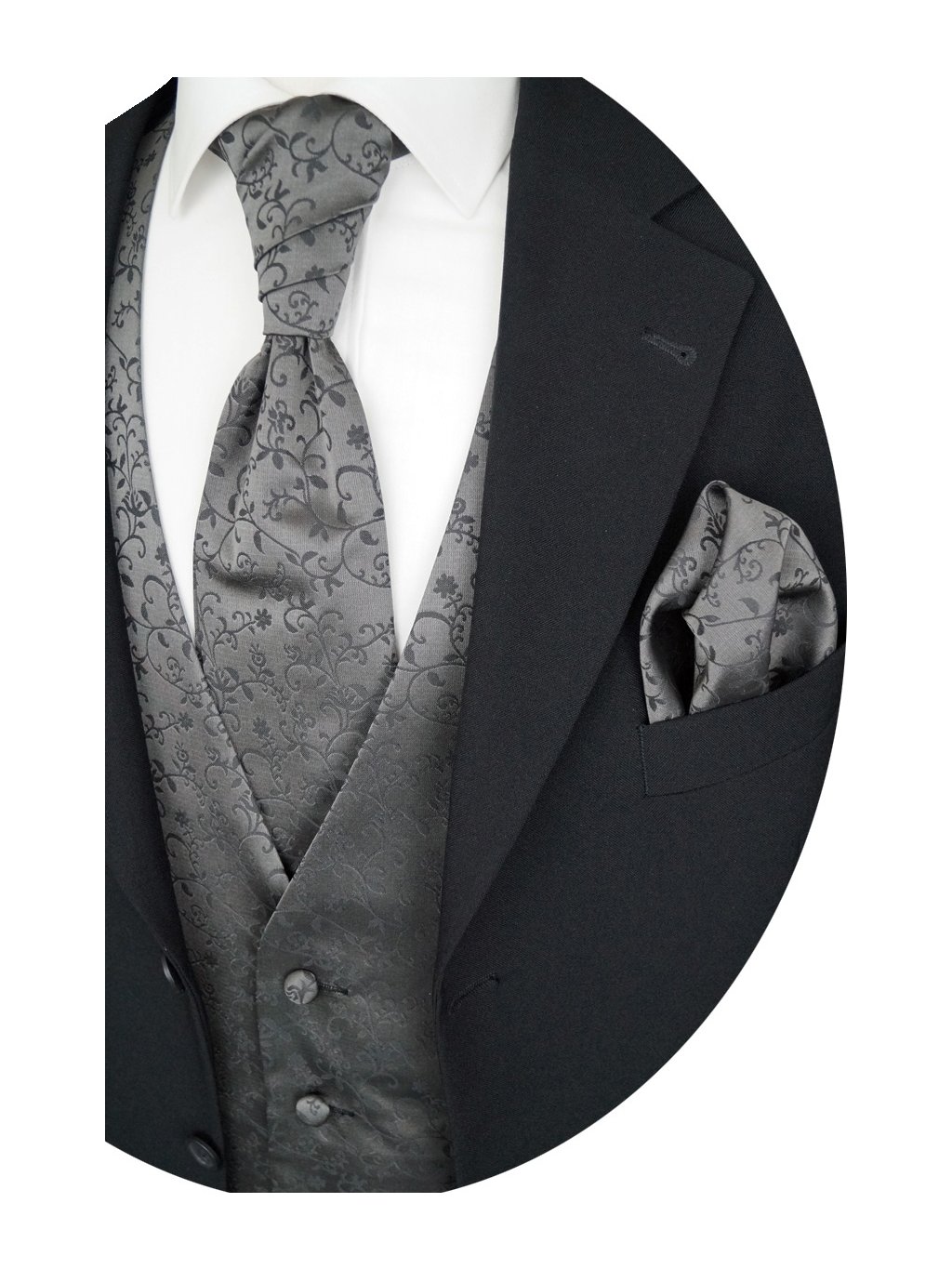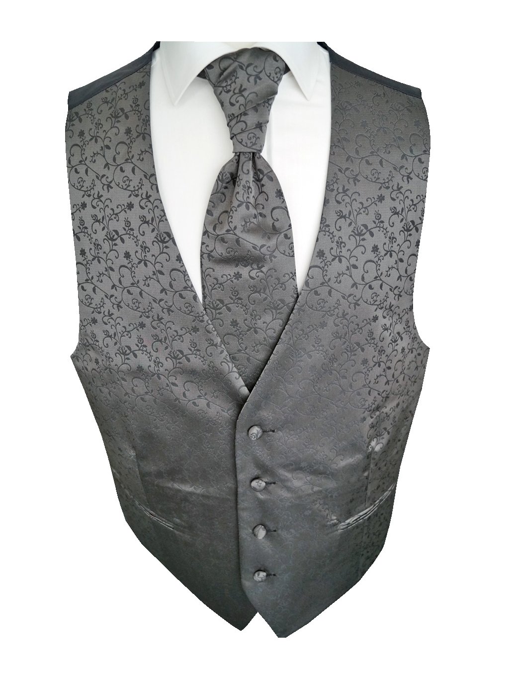 Beytnur svatební vesta - šedá, jemný prošitý vzor set obsahuje: vesta, kravata, plastron a kapesníček
