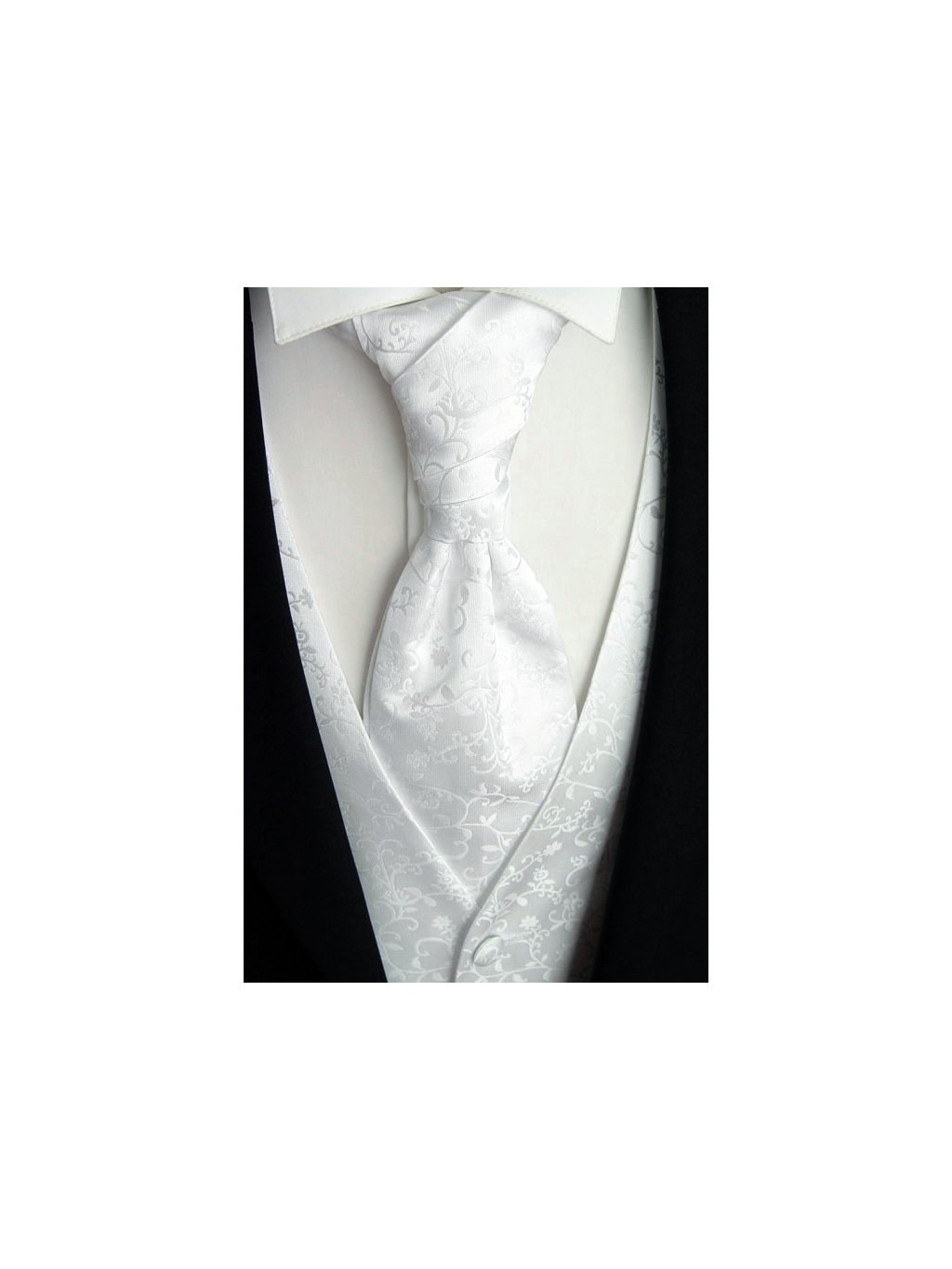 Beytnur svatební vesta - bílá, jemný prošitý vzor set obsahuje: vesta, kravata, plastron a kapesníček