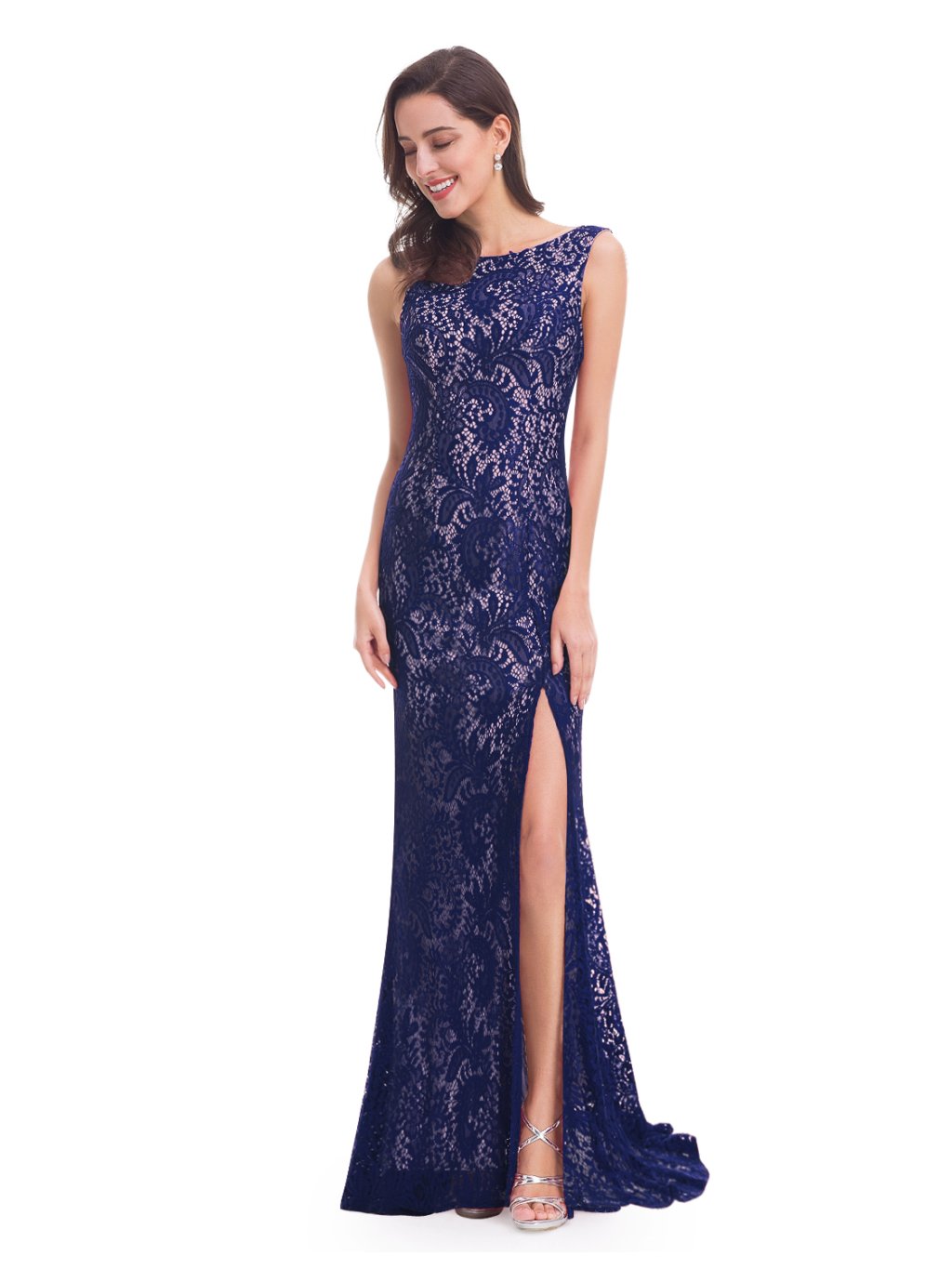Elegantní krajkové Ever Pretty šaty modré 8859