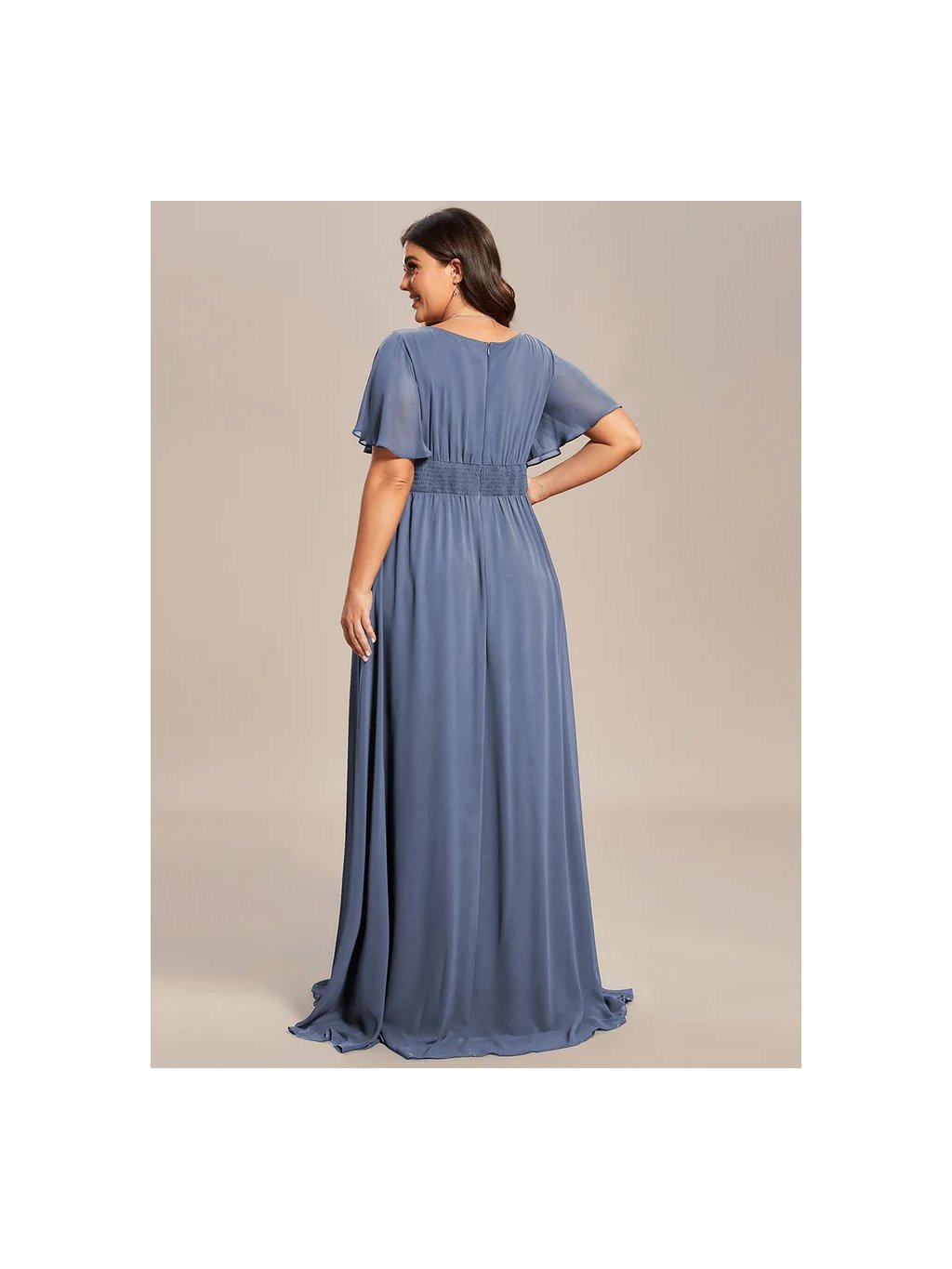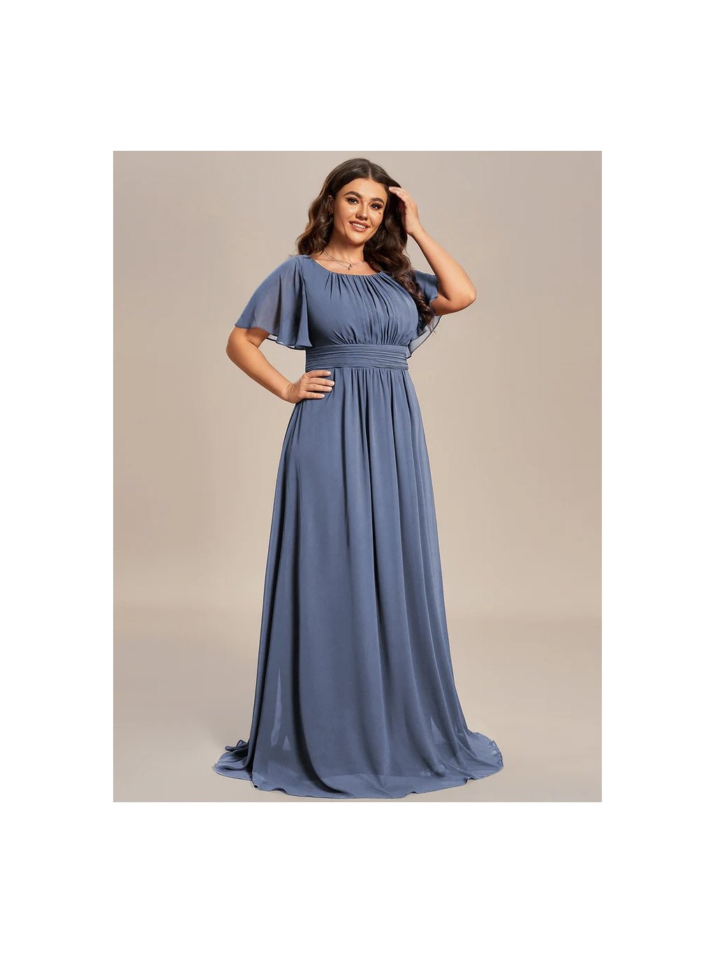 Jednoduché společenské dlouhé šaty na svatbu i večírek. Volné rukávy , kulatý vystřih, krásné jemné řasení. šaty se zapínám vzadu na zip.