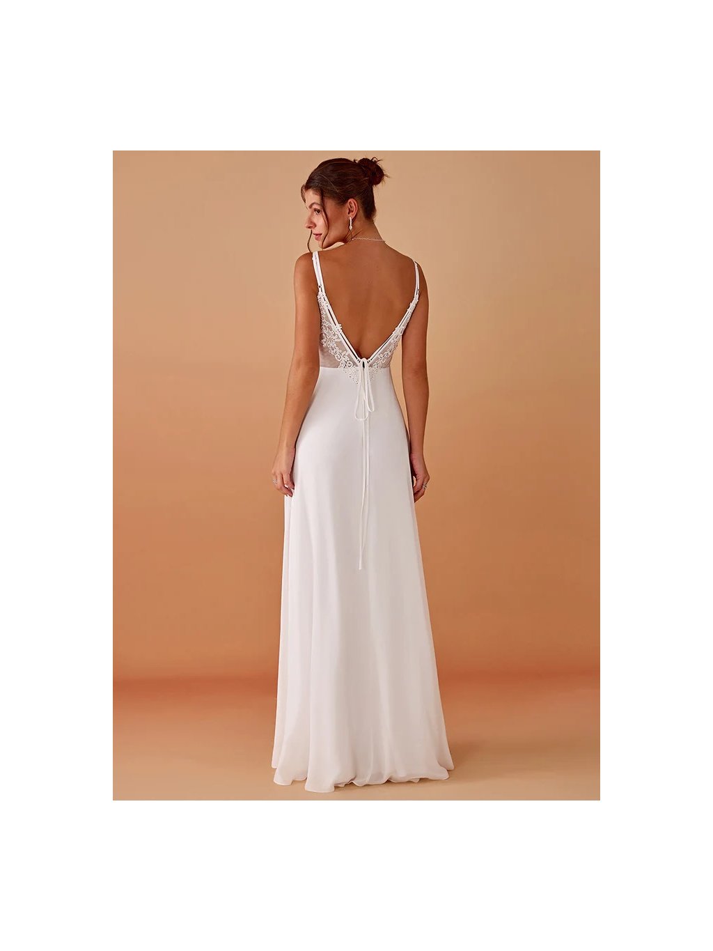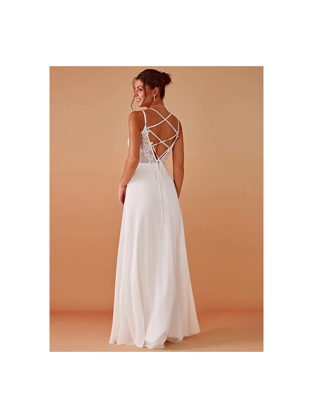 Luxusní ivory dlouhé šaty Ever Pretty. Šatičky jsou  ramínka, na prsou i zádech je větší véčkový výstřih nebo na zádech šněrování