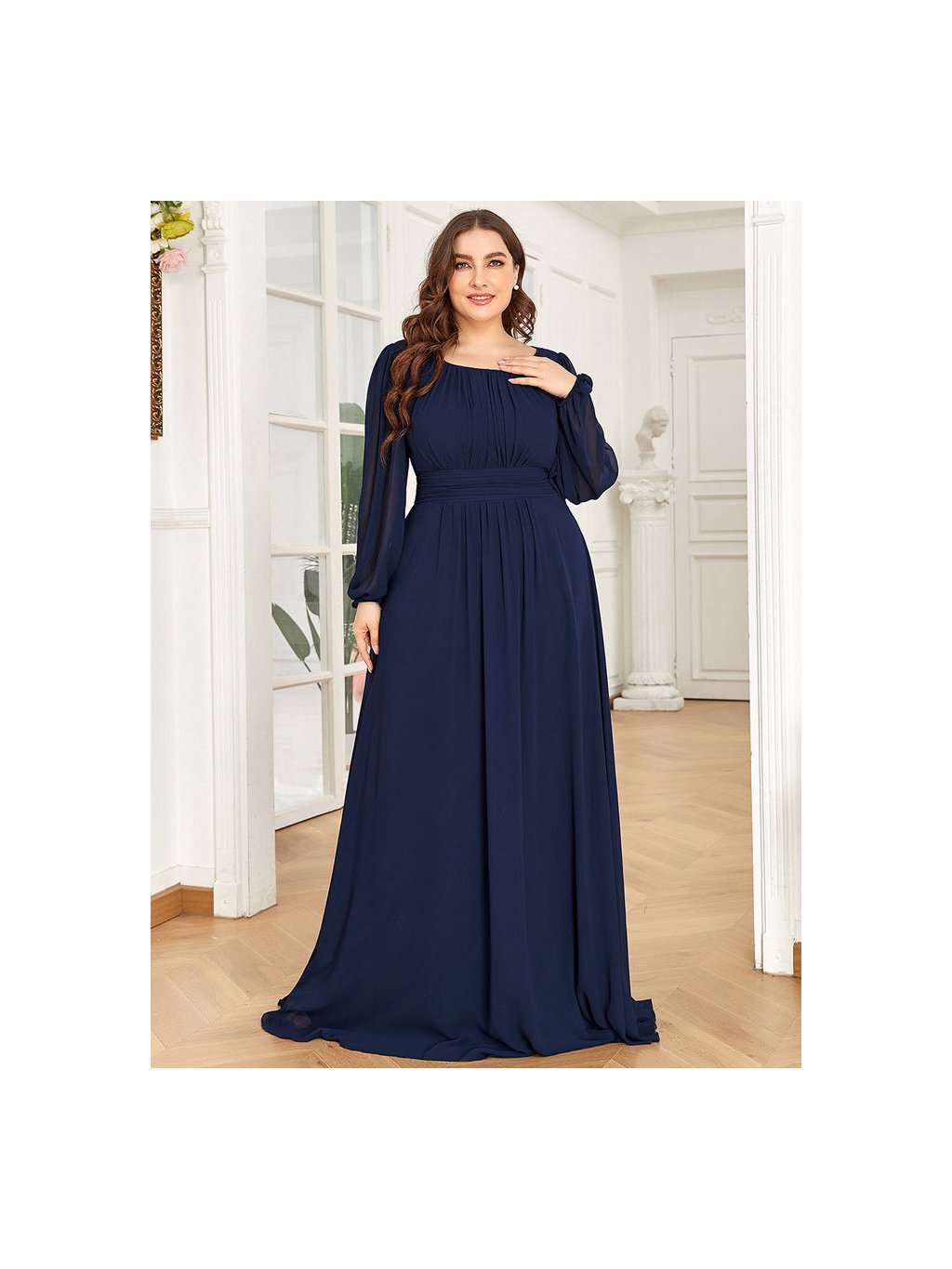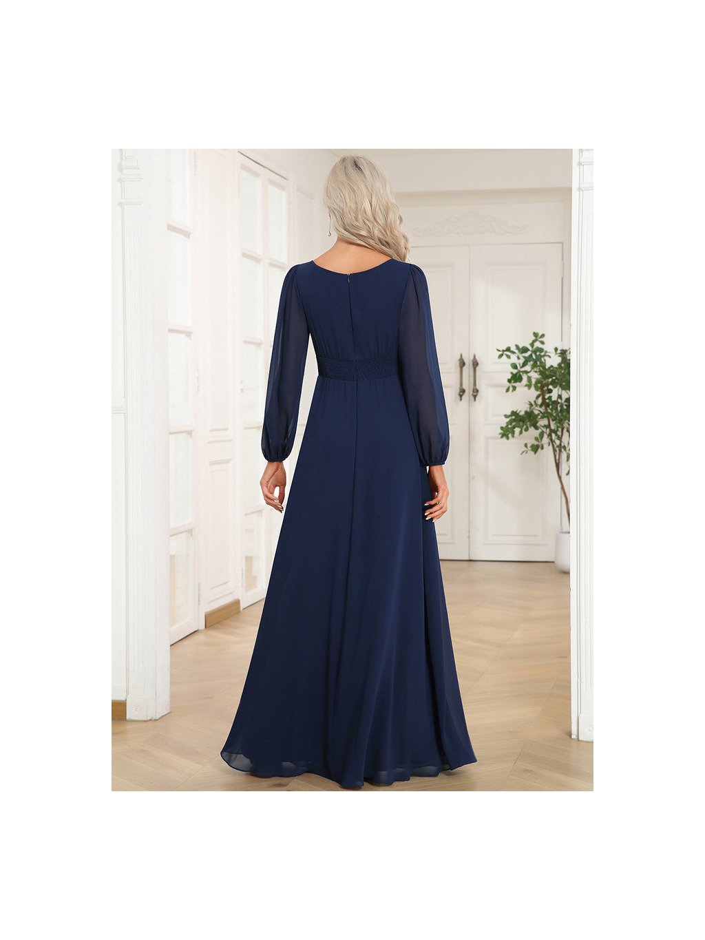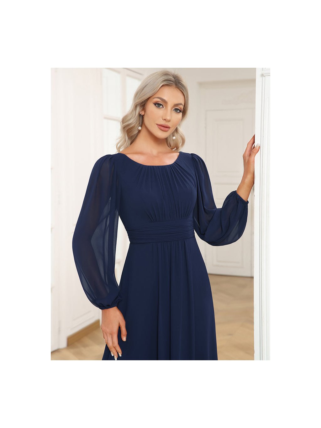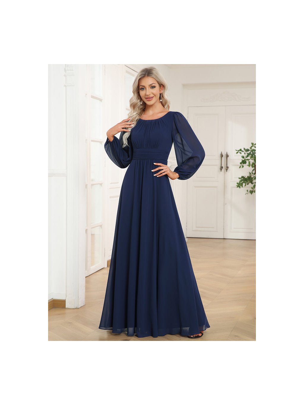 Jednodušše střižené  plesové šaty Ever Pretty. Šaty mají dlouhé rukávy. Na prsou kulatý výstřih.