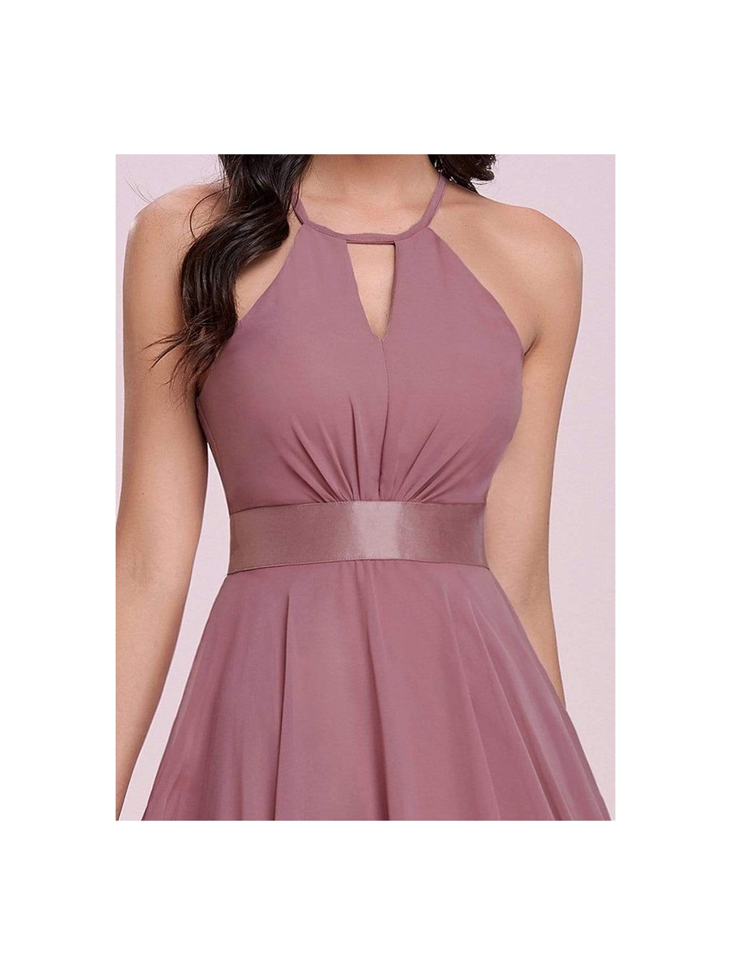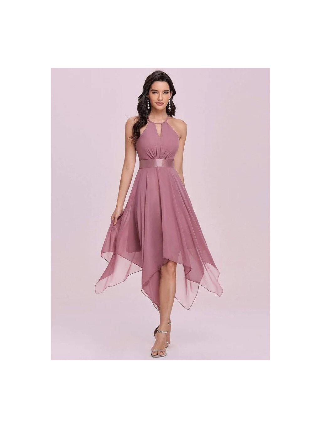 Jemné růžové šaty Ever Pretty. Šaty jsou na široká ramínka, véčkový výstřih. Na zádech skrytý zip.