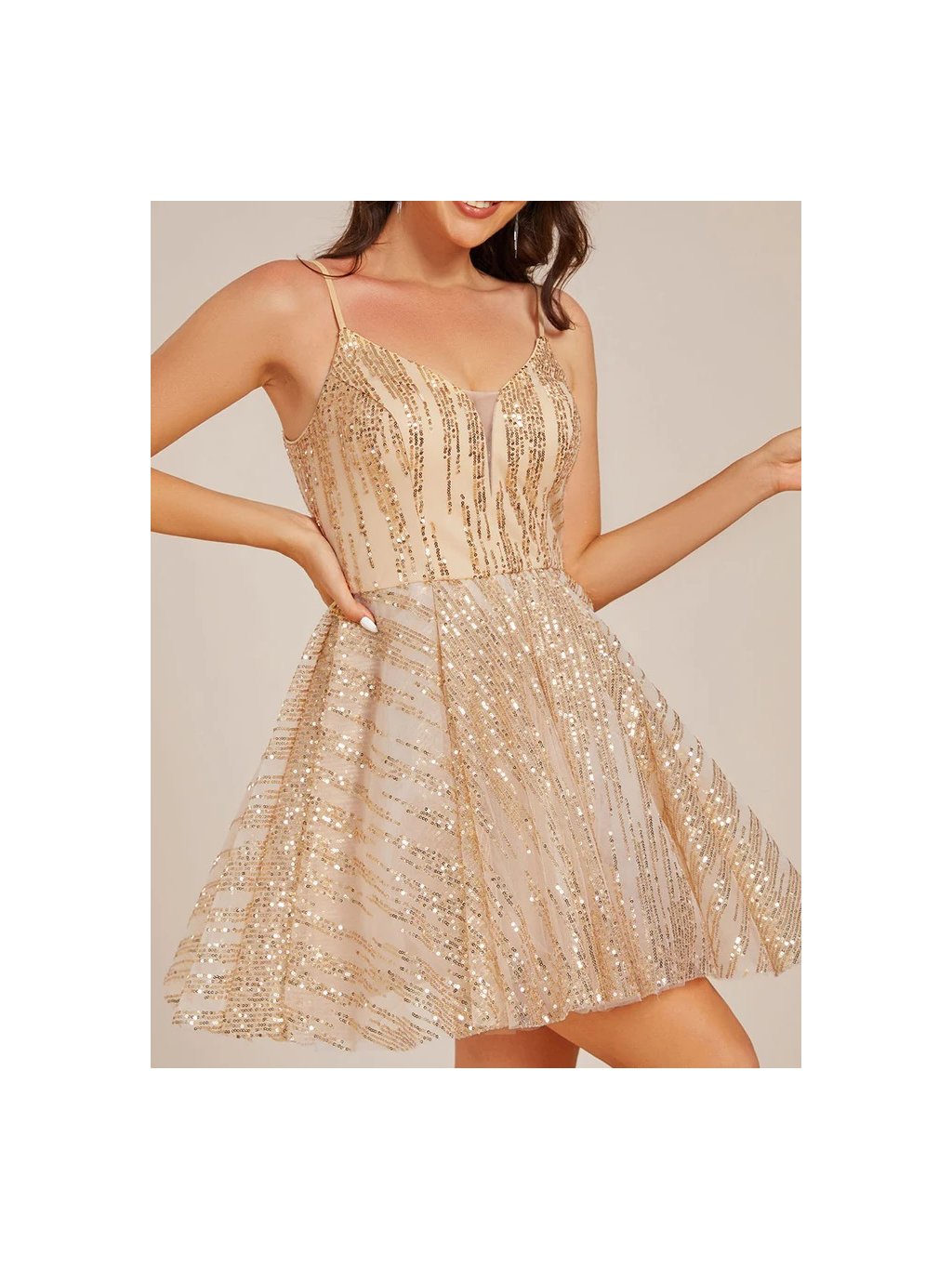 Ever Pretty krátké zlaté šaty s flitry 2261