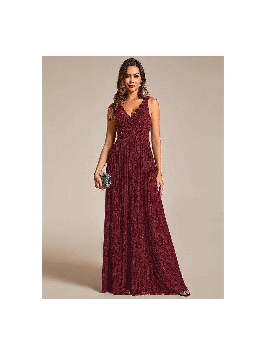 Krásné dlouhé bordo šaty Ever Pretty. Véčkový výstřih, bez rukávů, empírový pas