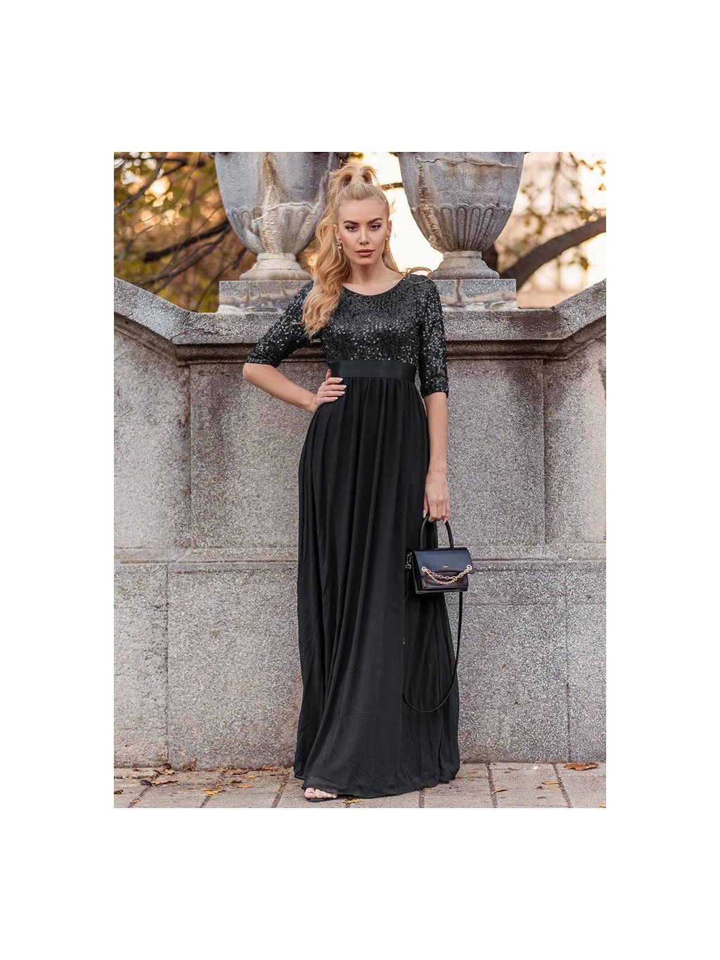 Úchvatné plesové šaty Ever Pretty. Šaty mají 3/4 rukávy. Na prsou kulatý výstřih. Flitrový živůtek.