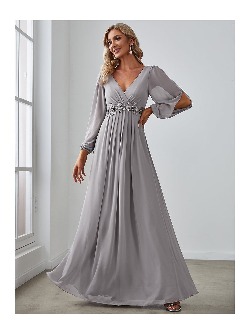 Úchvatné plesové šaty Ever Pretty. Šaty mají dlouhé prostřižené rukávy. Na prsou véčkový výstřih.