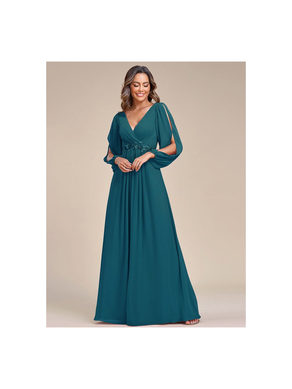 Úchvatné plesové šaty Ever Pretty. Šaty mají dlouhé prostřižené rukávy. Na prsou véčkový výstřih.