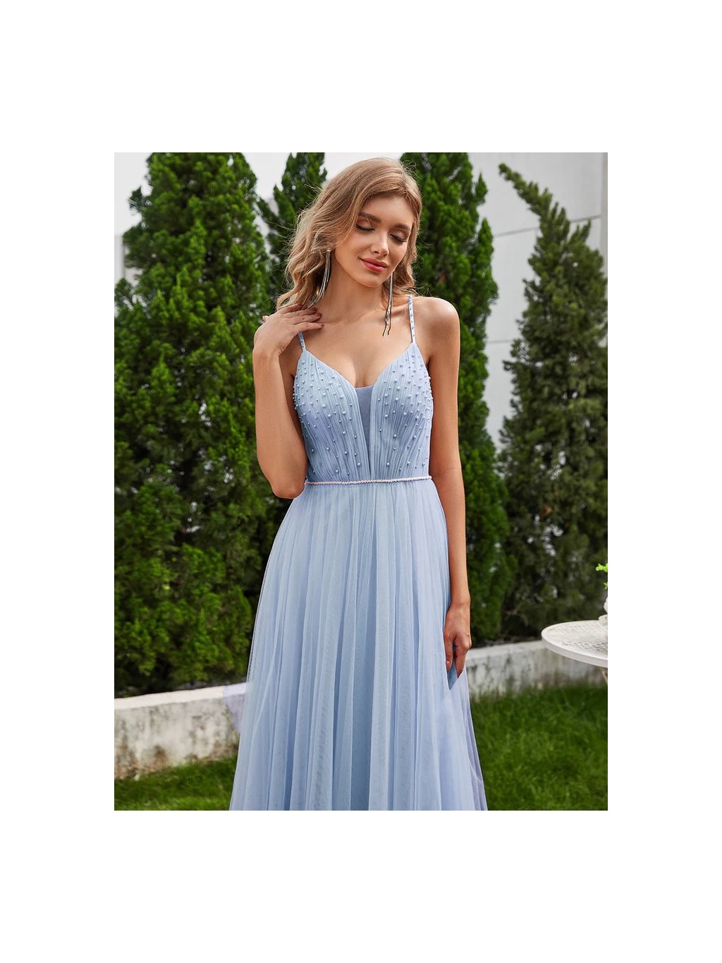 Úchvatné svatební šaty Ever Pretty. Šaty mají krajkovaný top s krátkými rukávy. Šaty zdobené perličkami.
