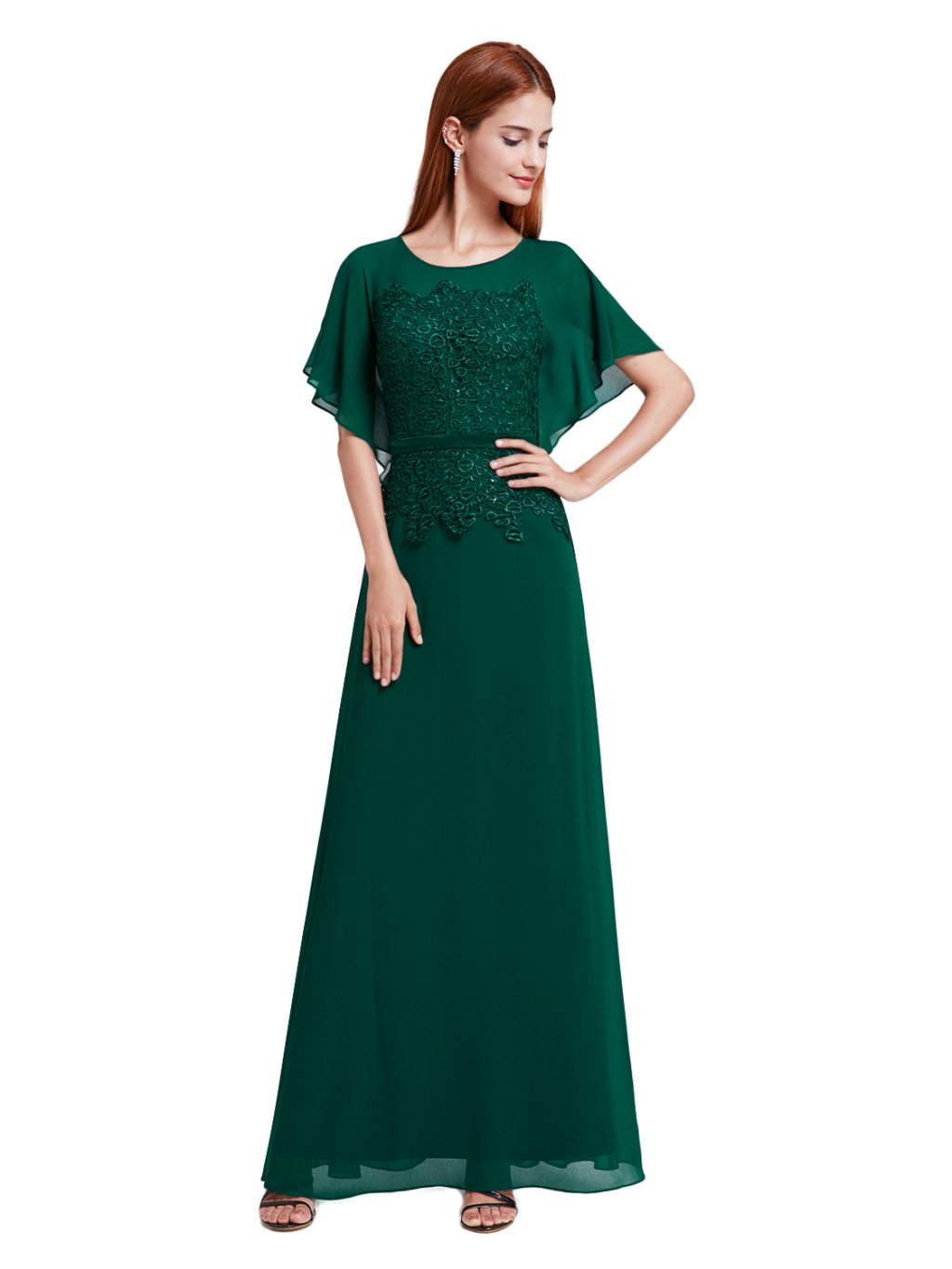 Společenské šaty s rukávky, elegantní zelené dlouhé šaty