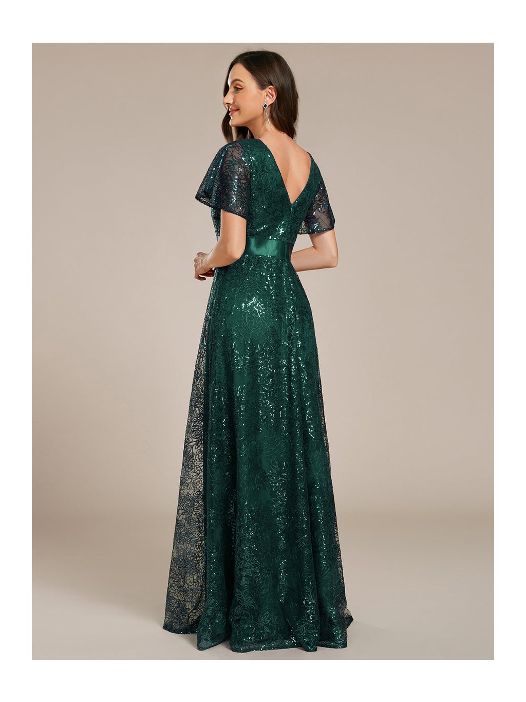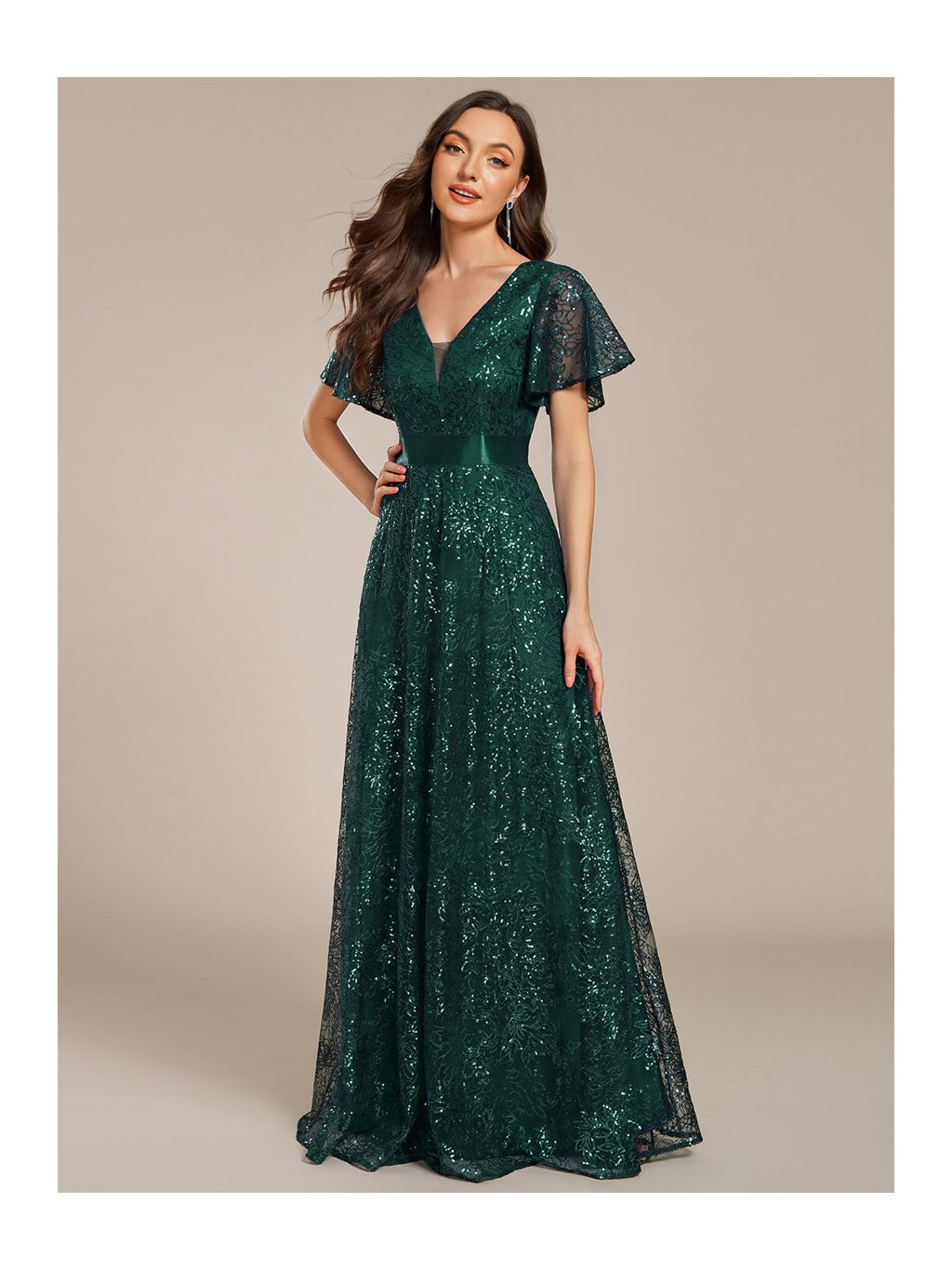Luxusní dlouhé šaty Ever Pretty. Šaty mají na prsou a v zadu véčkový výstřih. Mají průhledné krátké a volné rukávky s odlesky. Na zádech mají skrytý zip. Sukně je velmi bohatá. Šaty krásně padnou a dělají velmi pěknou postavu.