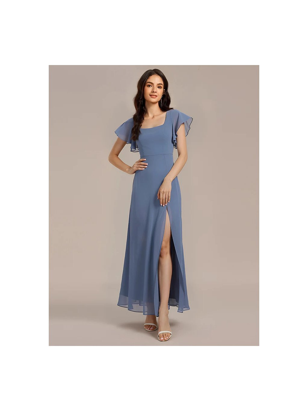 Jemné šaty s volánovým rukávem,čtvercový výstřih dokonalý jednoduchý design. Šaty jsou dlouhé po kotníky v zadu hluboký výstřih se šňůrkou na stažení.