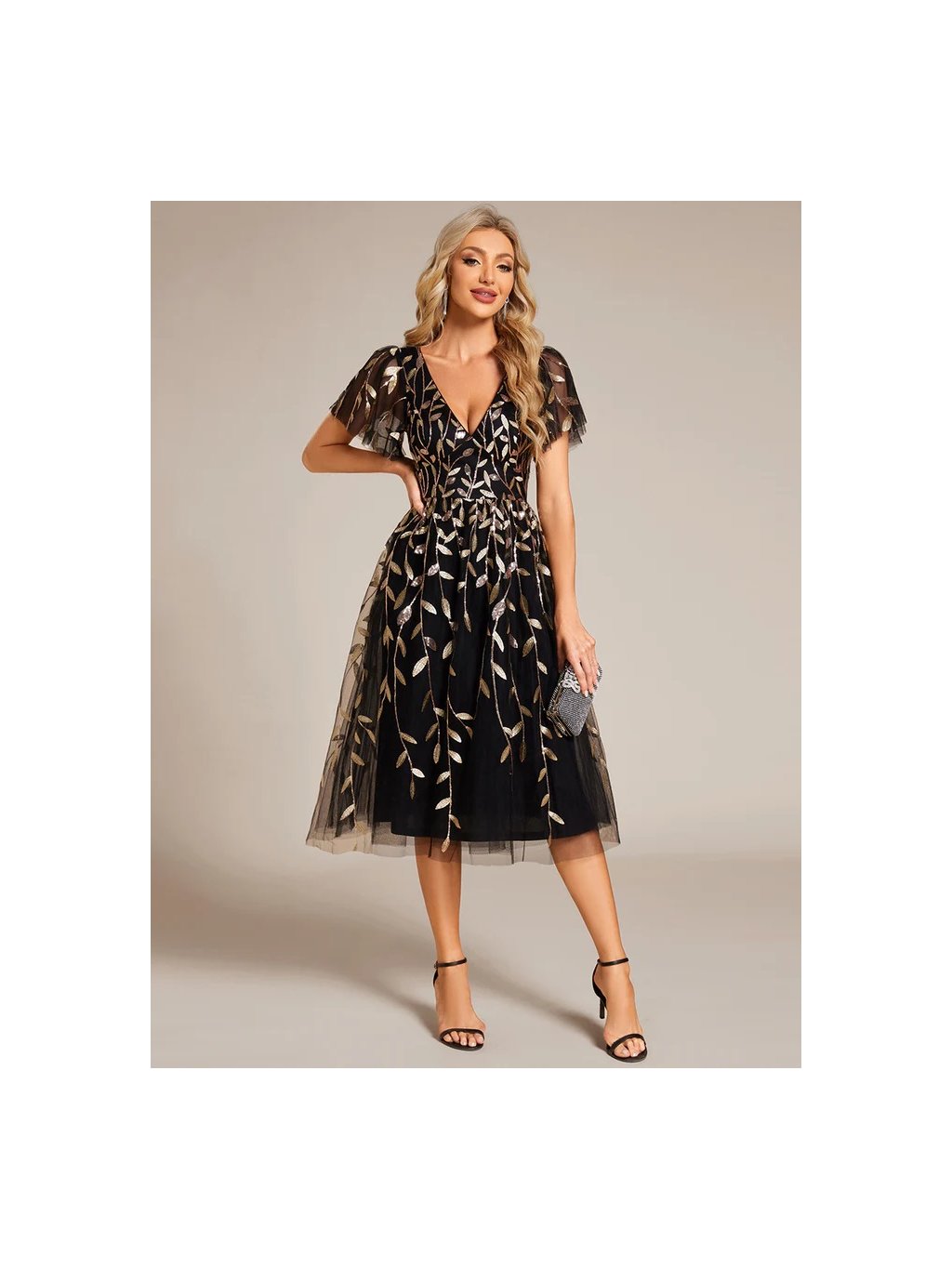 Ever Pretty šaty midi délka v černo zlaté barvě 2230