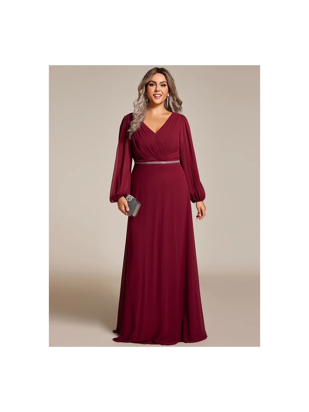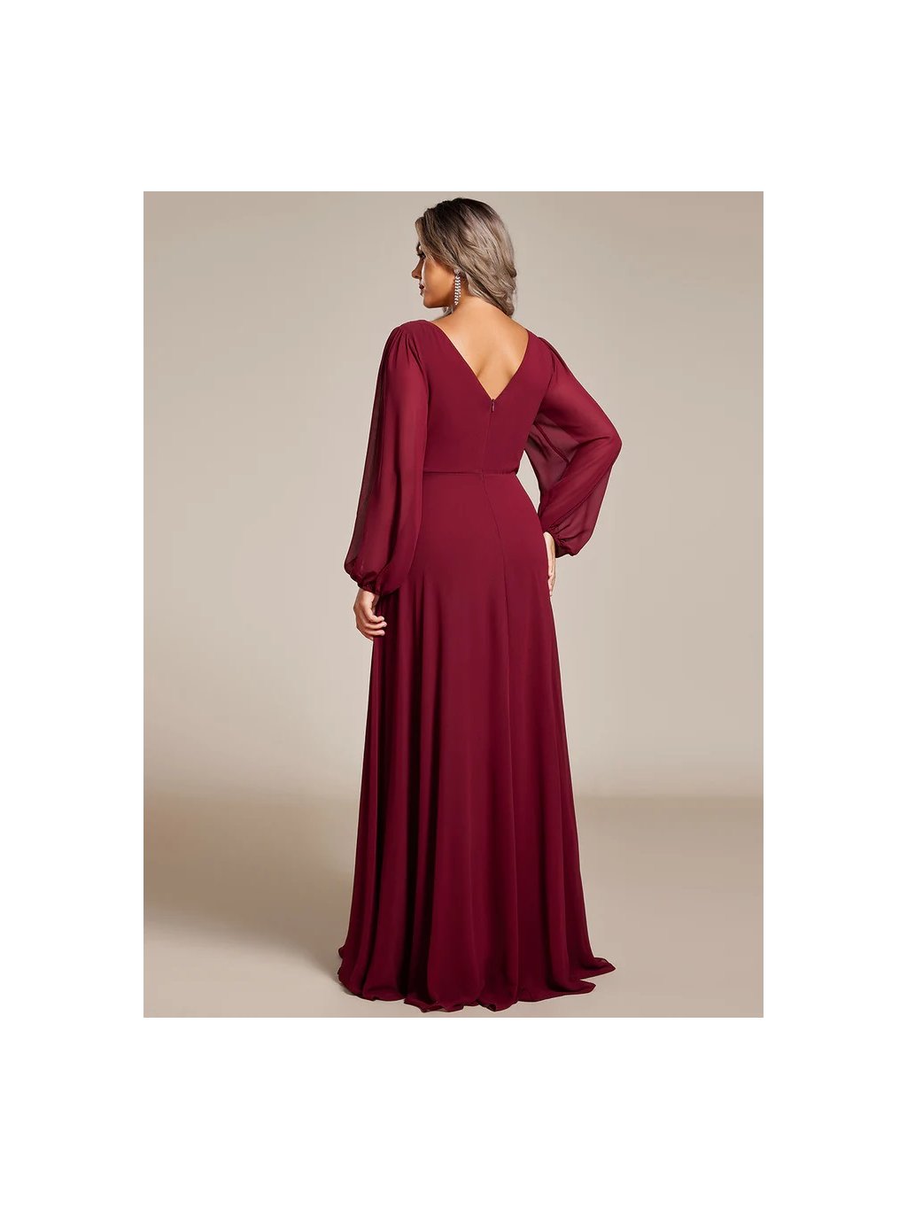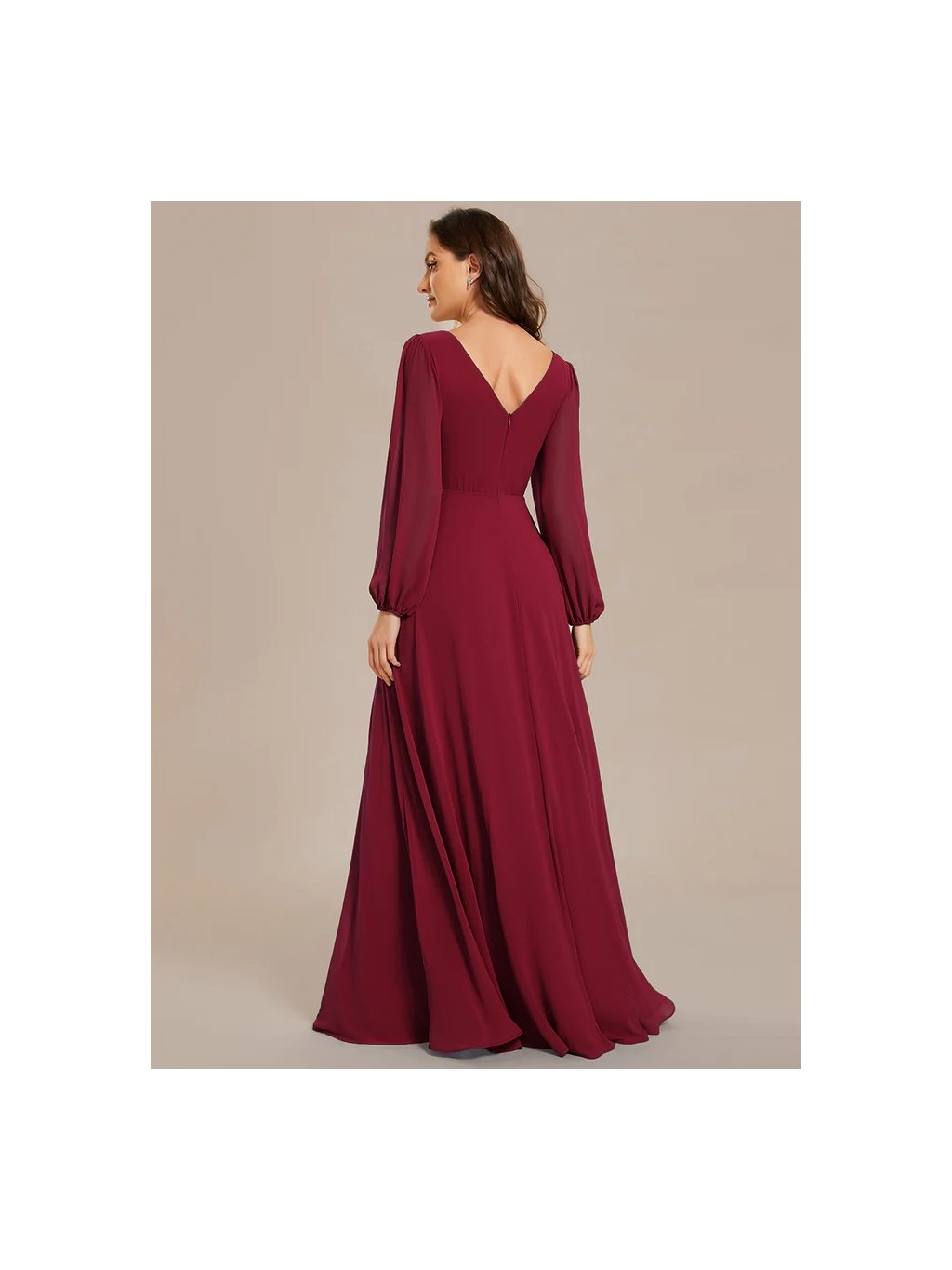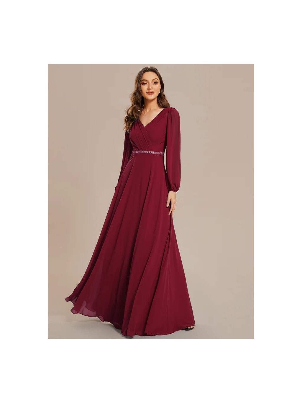 Jednodušše střižené plesové šaty Ever Pretty. Šaty mají dlouhé rukávy. Na prsou véčkový výstřih.