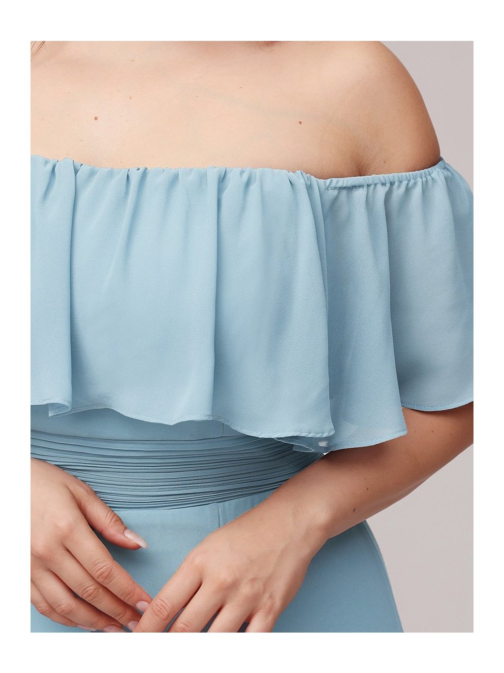 Jemné elegantní šaty Ever Pretty s volánem a holými rameny. Šaty mají nenápadný rozparek. Šaty vhodné pro dívky a ženy s menším obvodem přes prsa. Velmi příjemné řasení na zádech krásně drží a přizpůsobí se Vaší postavě. Není vložena podprsenka.