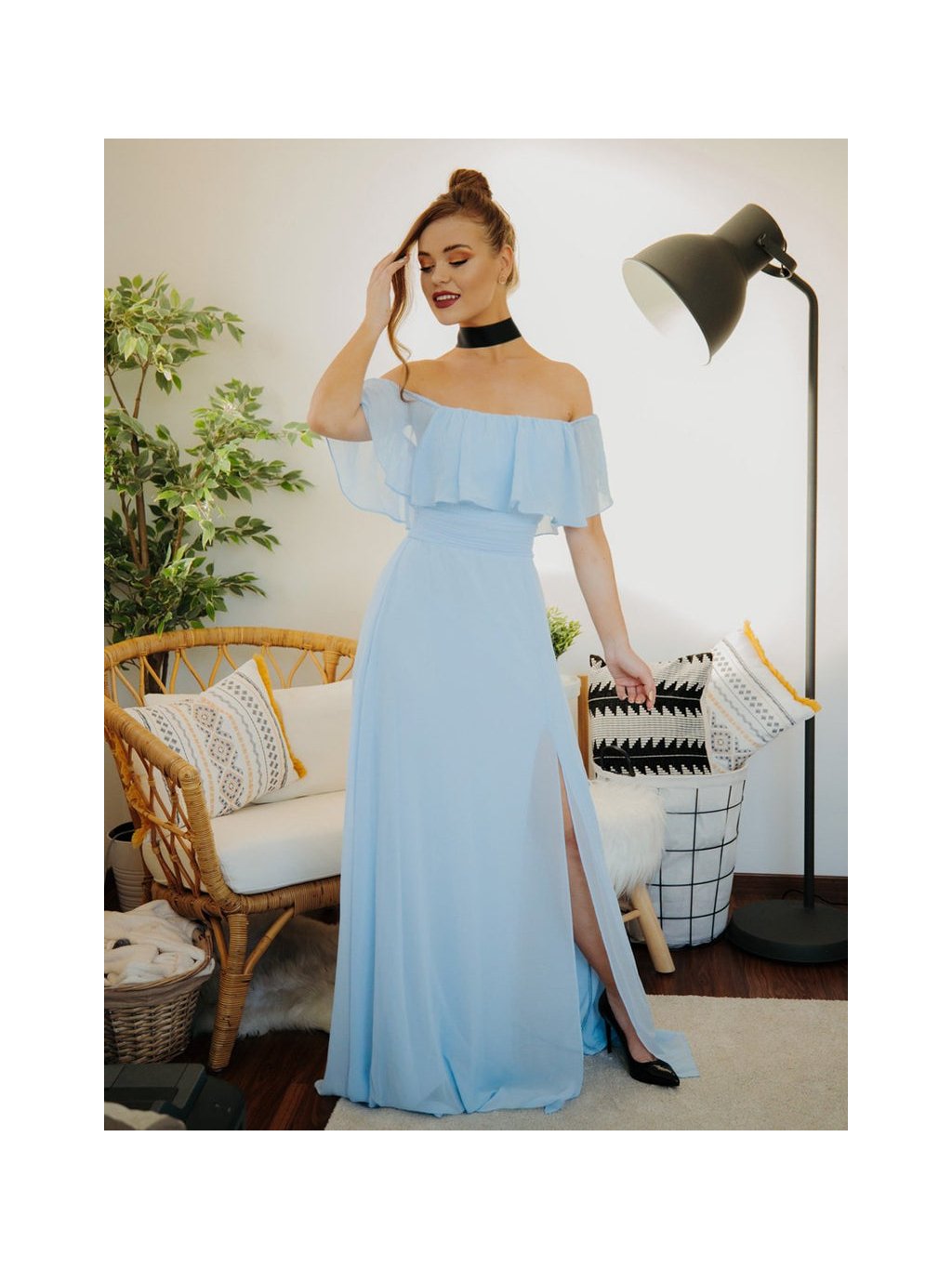 Ever Pretty šaty světle modré dlouhé s volánkem 0968