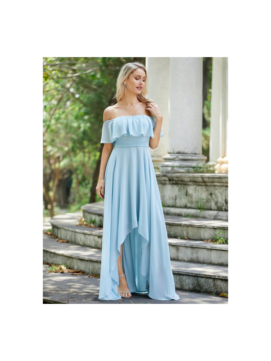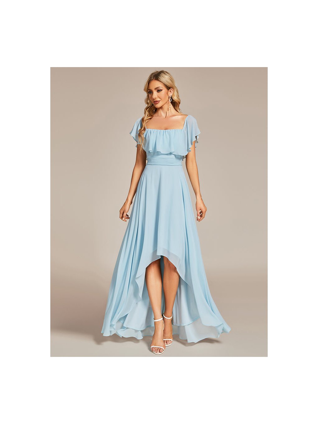 Jemné elegantní šaty Ever Pretty s volánem a holými rameny. Šaty mají asymetrickou sukni. Šaty vhodné pro dívky a ženy s menším obvodem přes prsa. Lze nosit ve dvou provedeních, buď spadnuté ramínka nebo na ramenou ;)