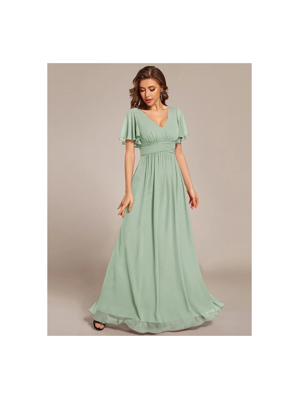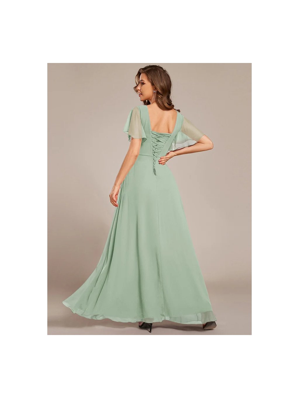 Šaty mají krátké volné rukávky. Na prsou je véčkový výstřih. Šatičky mají skrytý zip na zádech a šněrování .Šatičky jsou lehké a krásně se přizpůsobí Vaší postavě.