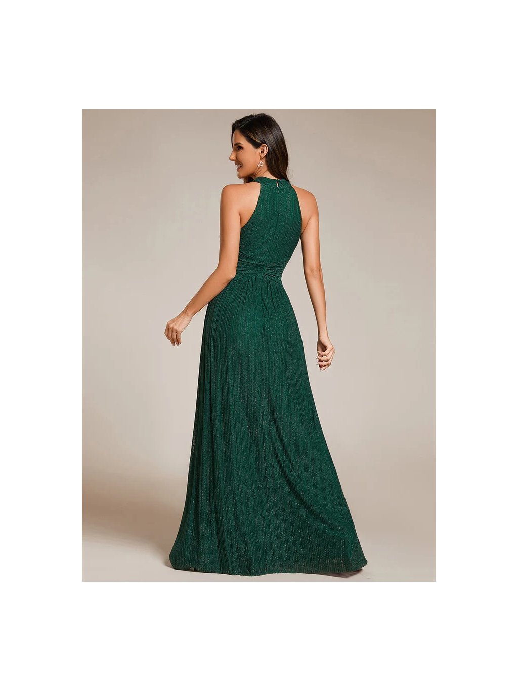 Šaty do společnosti nebo do tanečních, zelené šaty dlouhé s ohlavkovým výstřihem.