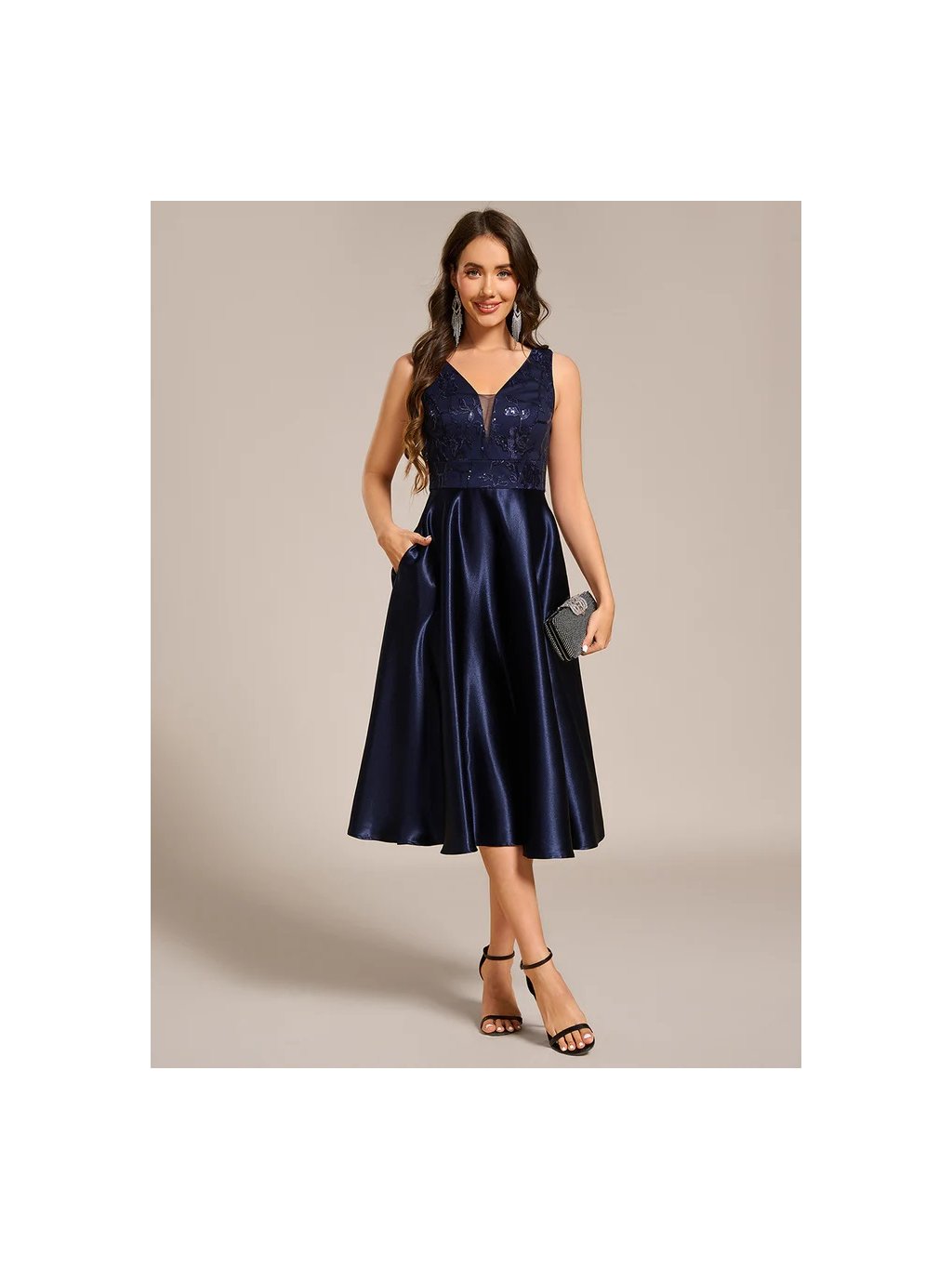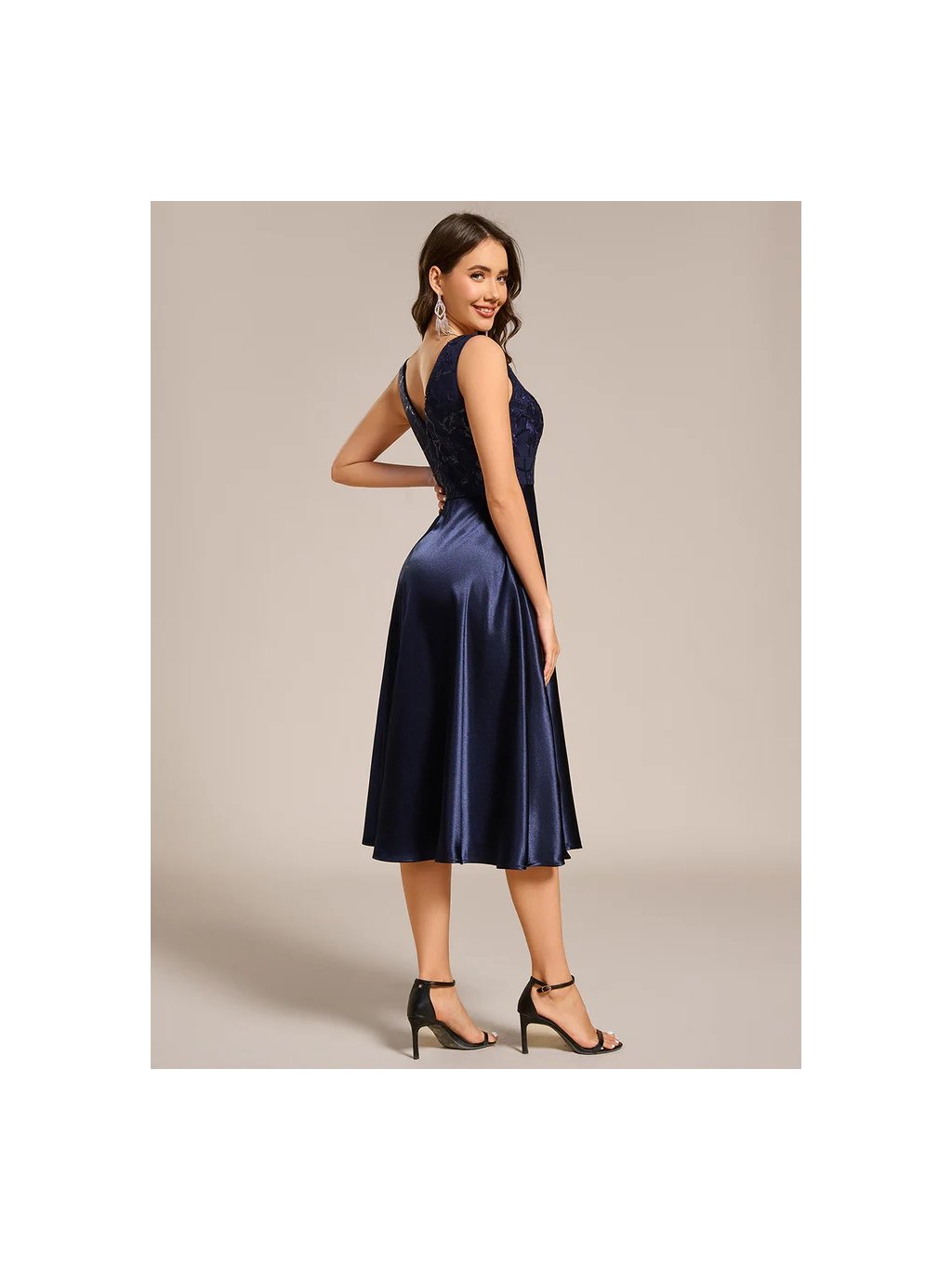 Krásné šaty Ever Pretty v délce midi, bez rukávů, velký výstřih, s výšivkou