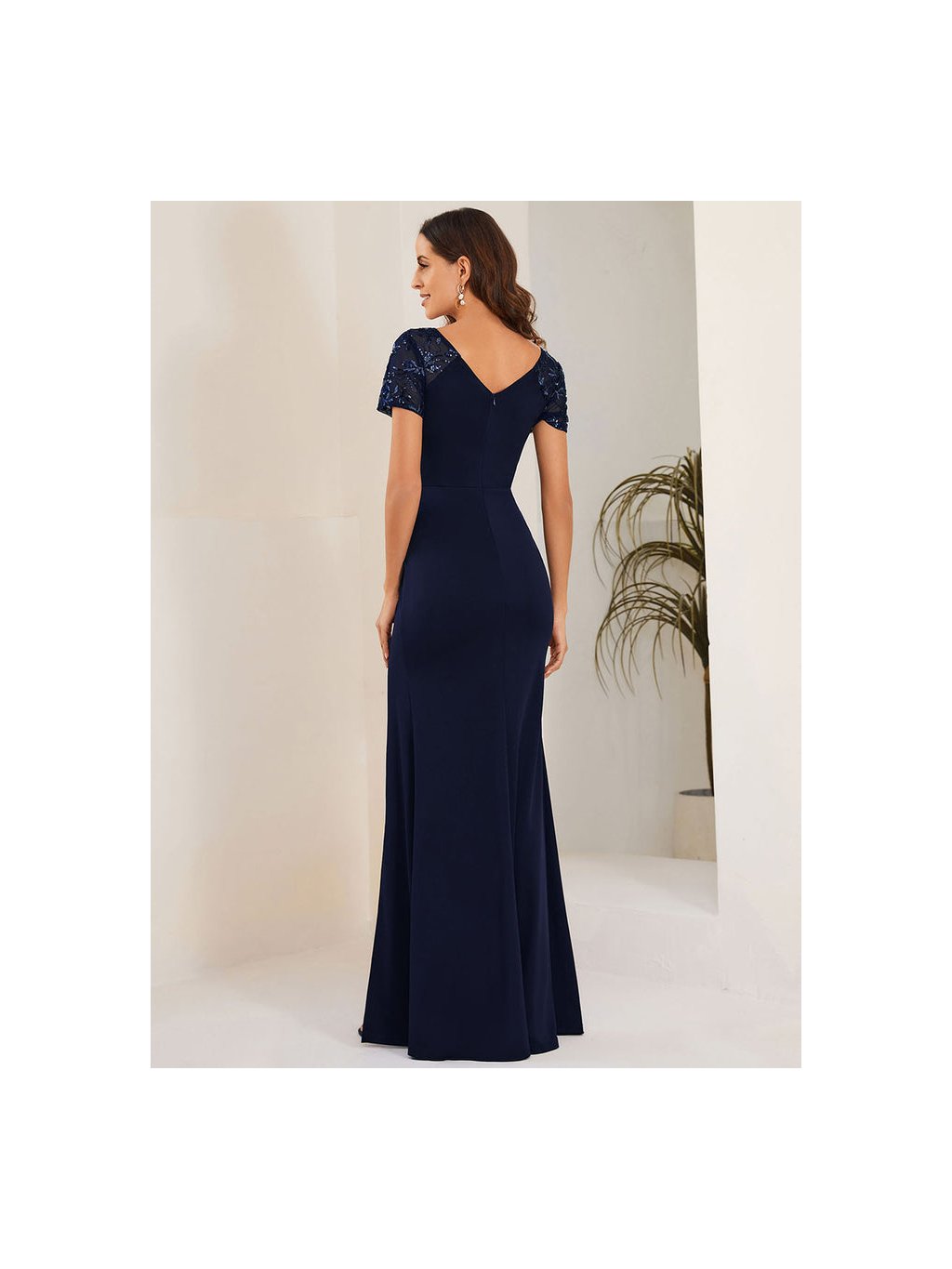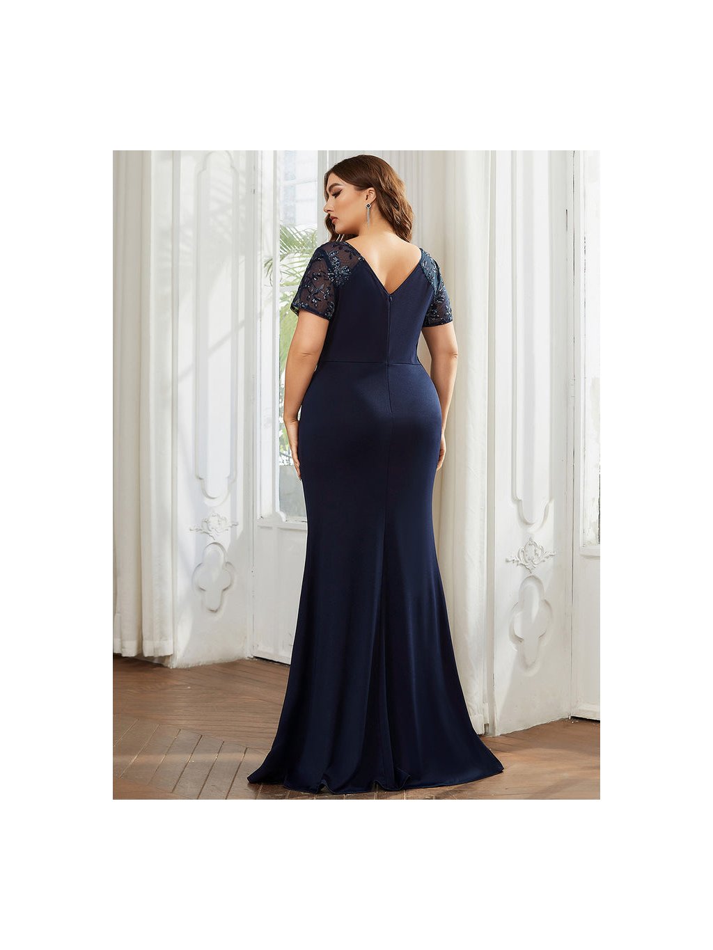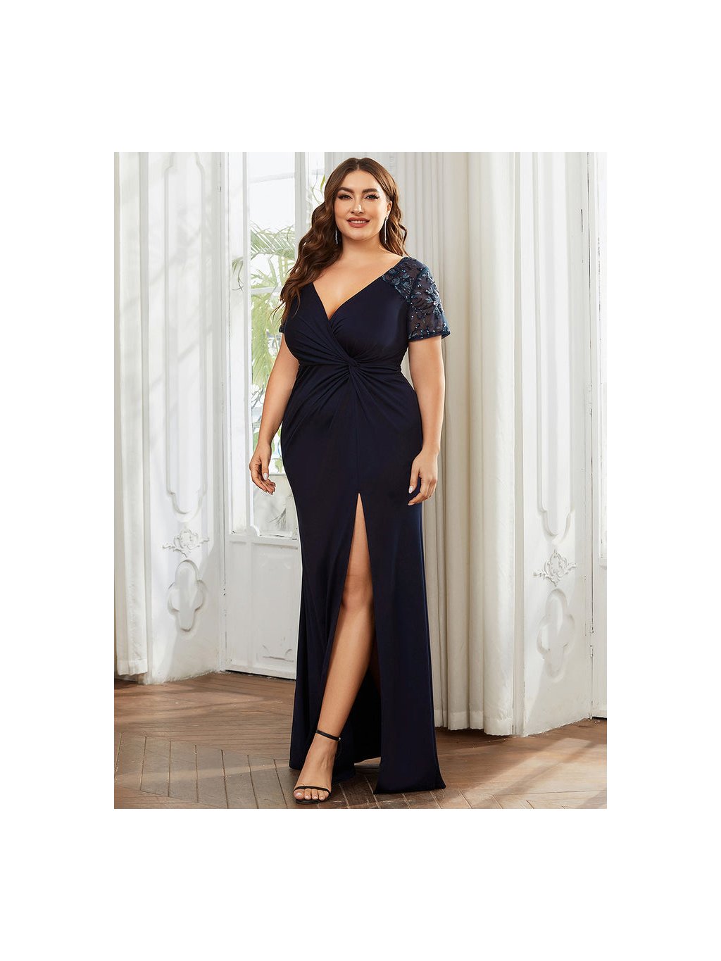 Plesové tmavě modré šaty s rozparkem 1669