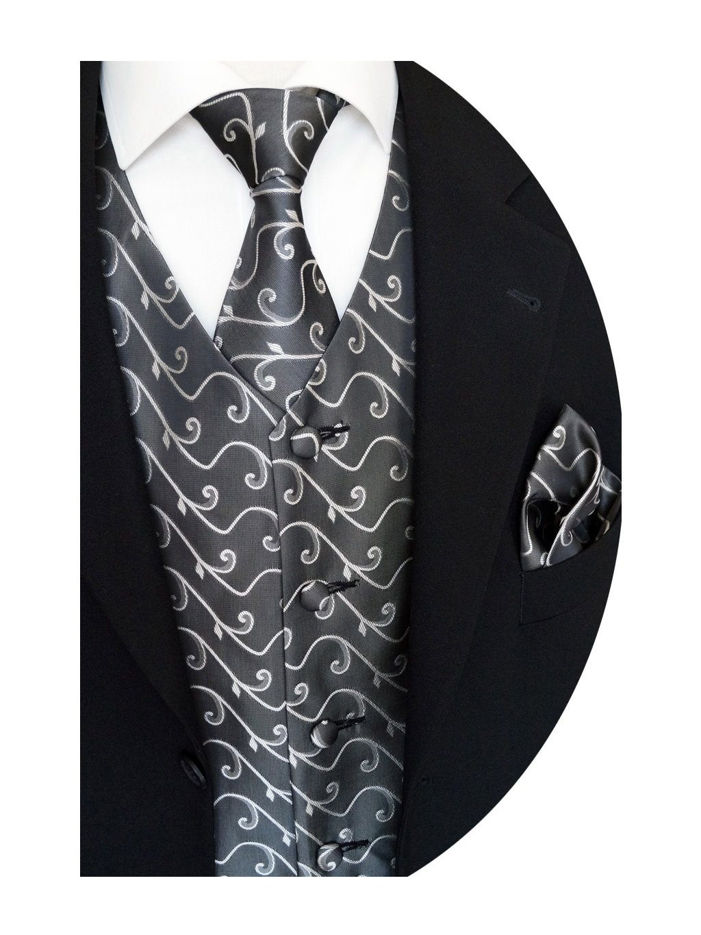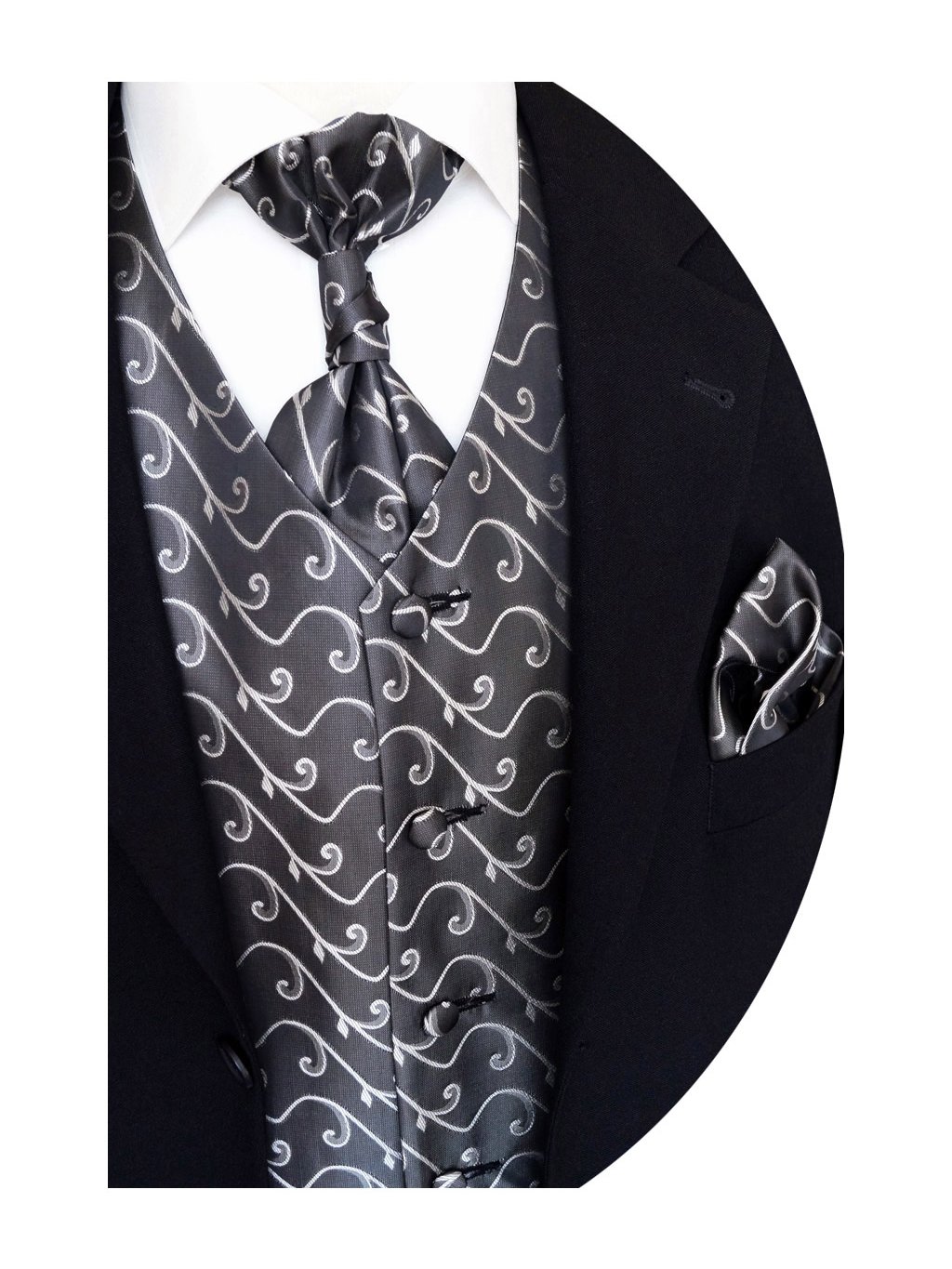 Tabulka velikostí vest: kliněte zde Beytnur svatební vesta - antracit, jemný prošitý vzor set obsahuje: vesta, ragata, kravata a kapesníček značka: Beytnur knoflíčky: 4 materiál: vnější tkanina je vyrobena z polyesteru (mikrovlákna) a zadní část z čisté viskózy Kravata je 150cm dlouhá a cca 8,5 široká (v nejširším místě) Plastron - ozdobná delší vázanka na zapínání Kapesníček stejného designu, rozměr 24x24 Vesta má vzadu pásek na upravení velikosti v pase. Svatební sety jsou ve dvou velikostech klasická a prodloužená ( má cca 2 cm delší zadní část) Pro určení velikosti využijte tabulku uvedenou níže.Pokud si nejste jistí velikostí rádi Vám pomůžete na telefonu či emailem. Případná výměna velikosti není problém.Doplňkové parametry