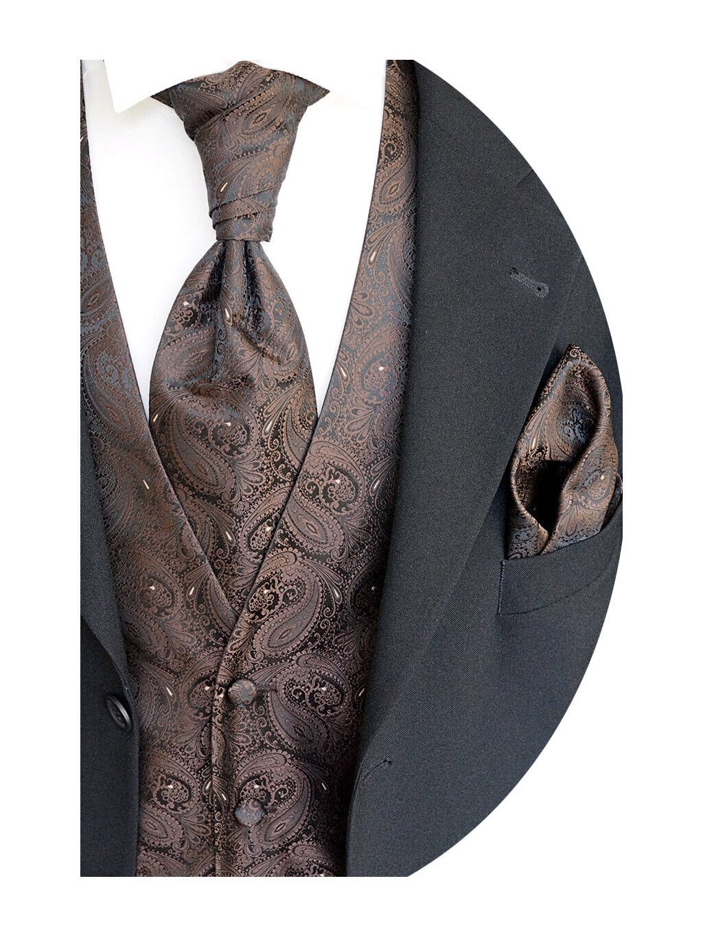 Beytnur svatební vesta - hnědá, jemný prošitý vzor set obsahuje: vesta, kravata, plastron a kapesníček
