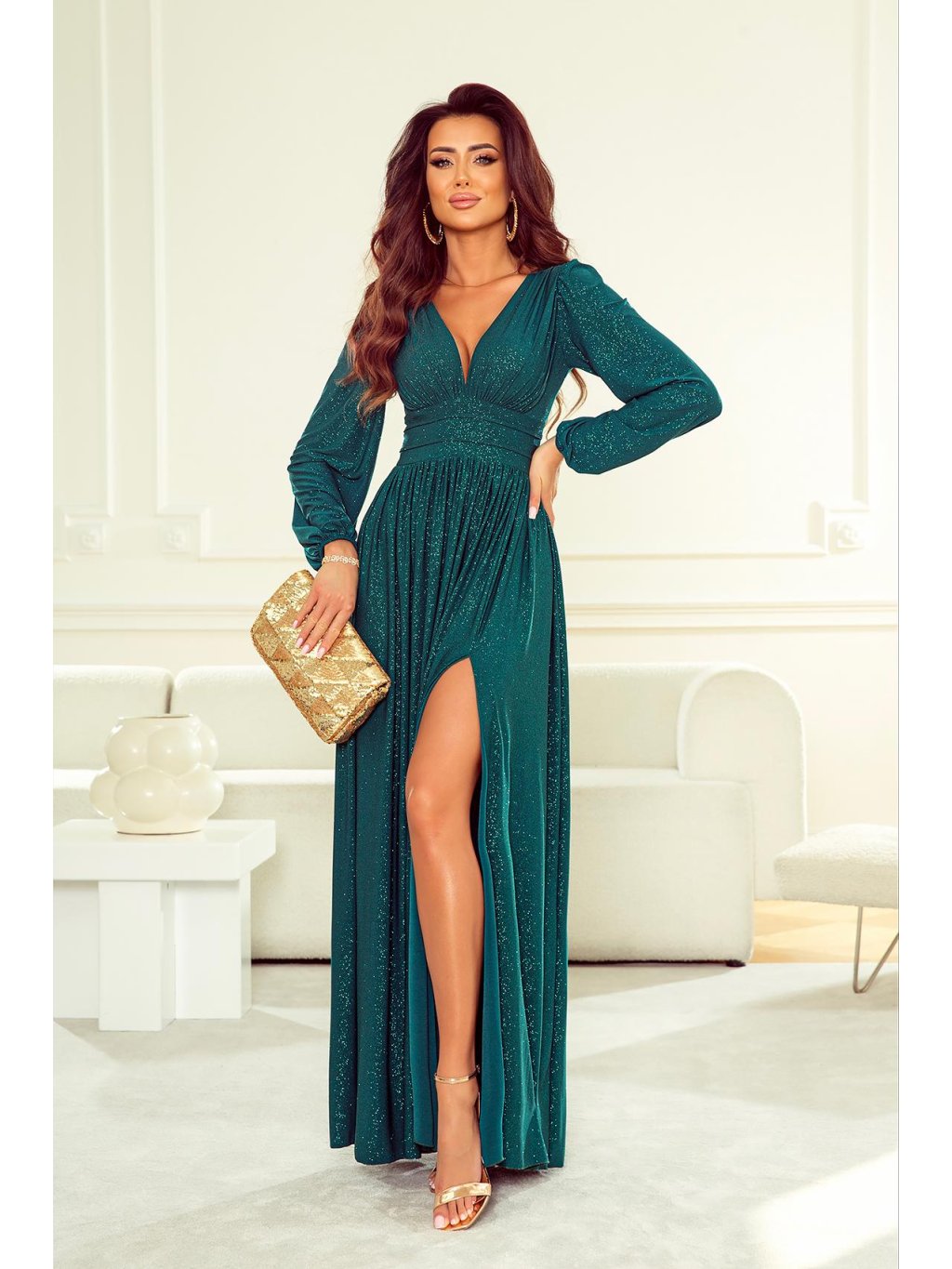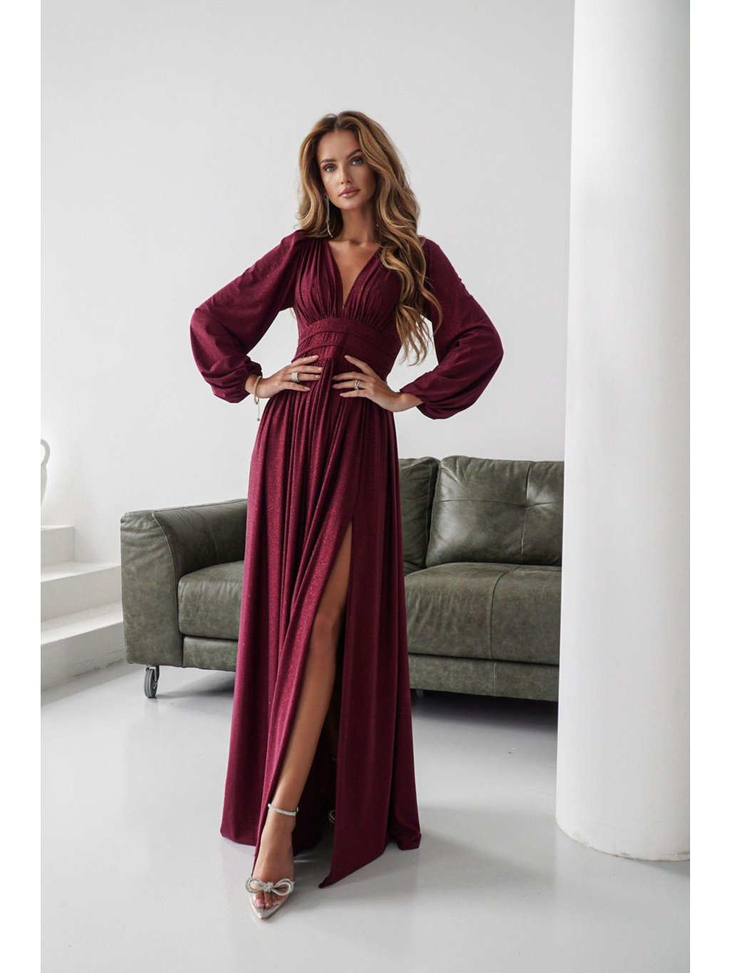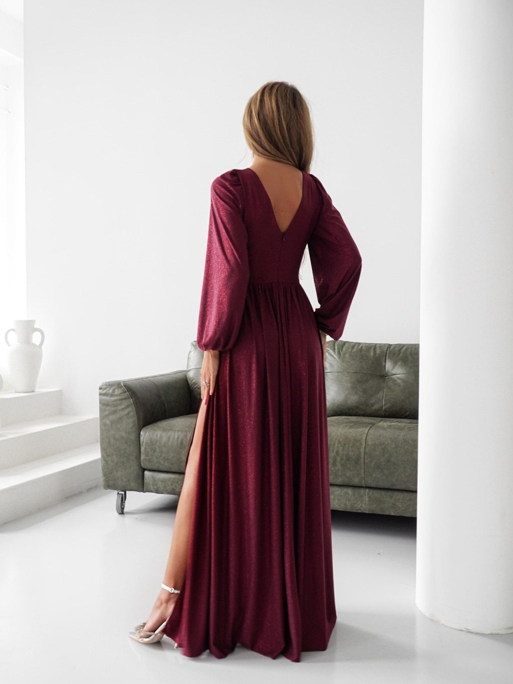 Luxusní šaty z jemně třpytivého materiálu, který je velmi elegantní a nepřhlédnutelný. Budete doslova zářit. Šaty jsou dlouhé s rozparkem. Šaty jsou mírně pružné.