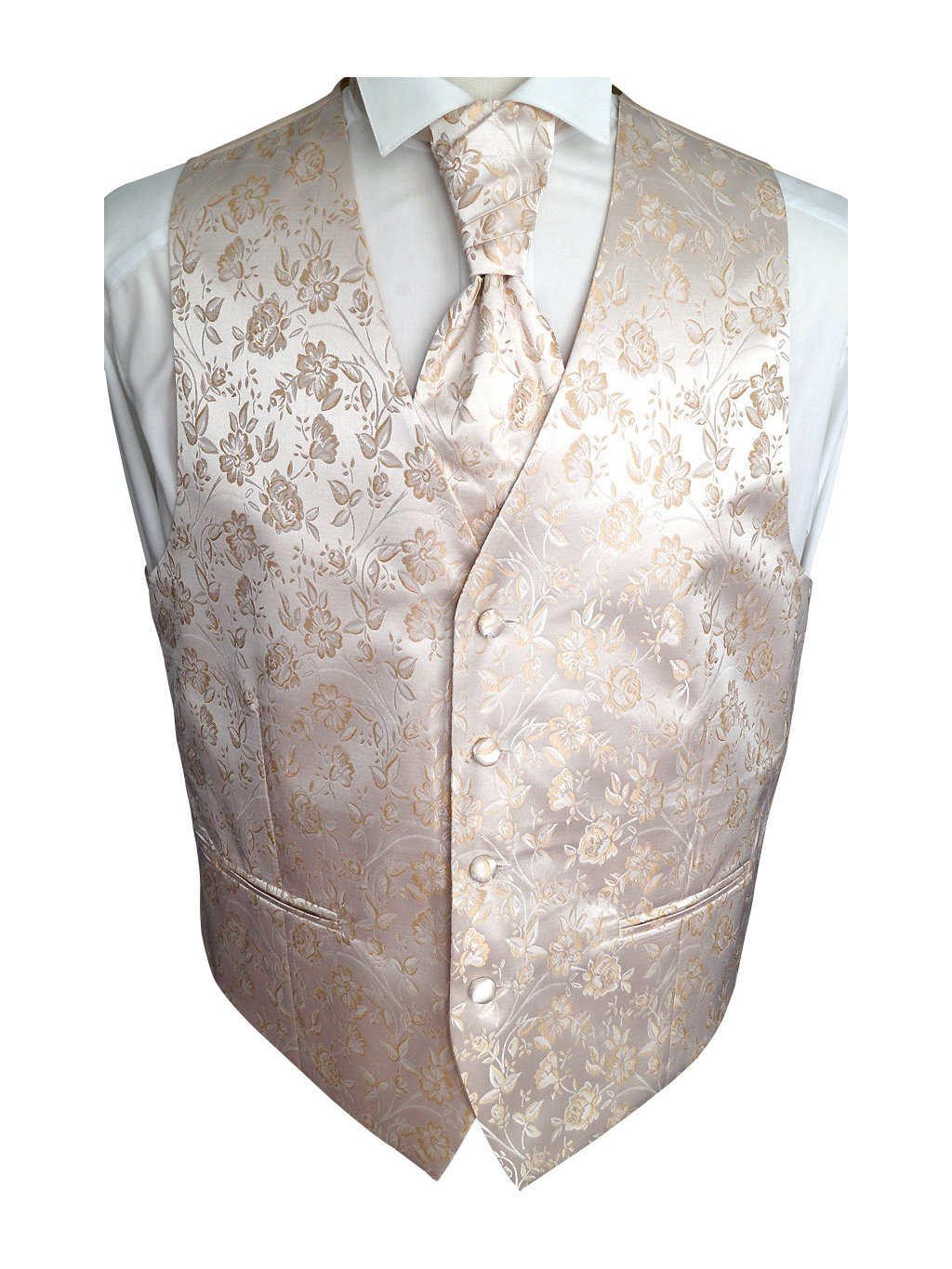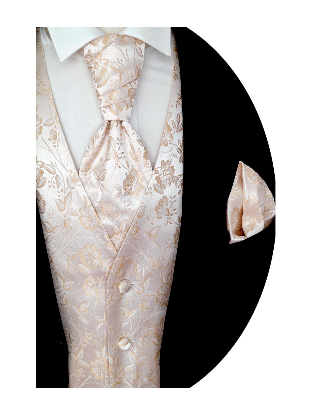 Svatební vesta Beytnur 16-1 kravata, plastron a kapesníček - květinový vzor