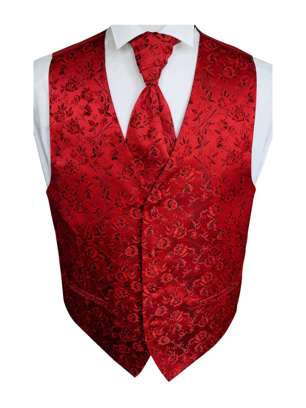 Beytnur svatební vesta - červená, jemný květinový vzor