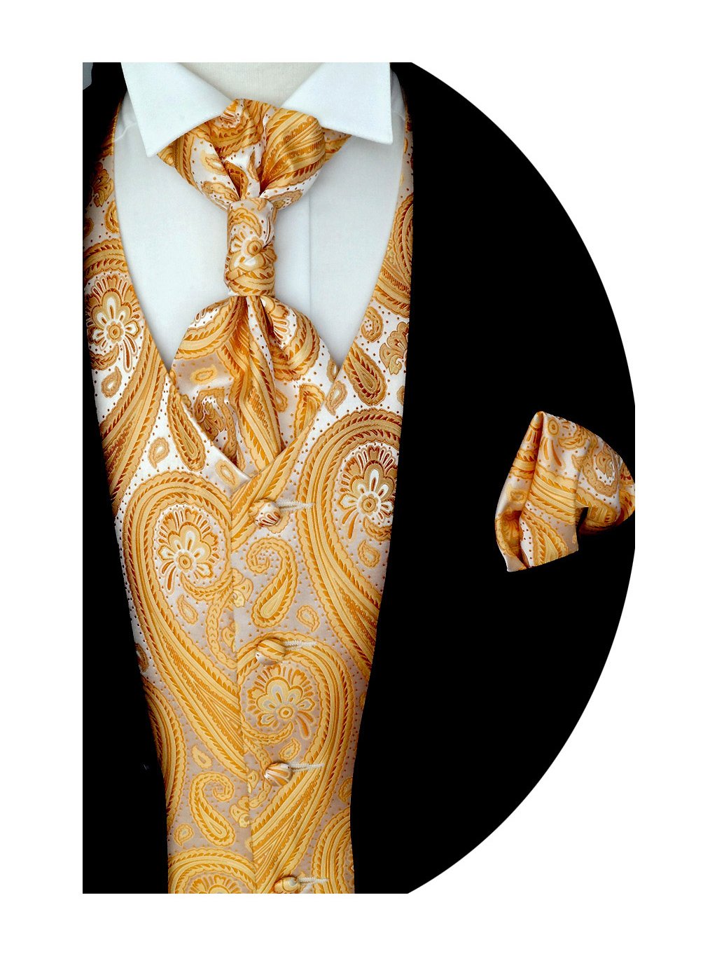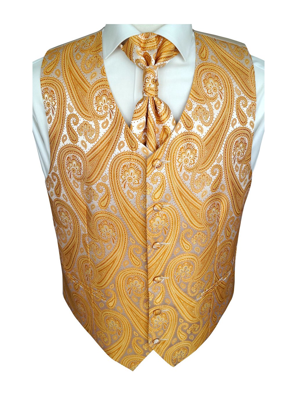 Tabulka velikostí vest: kliněte zde Beytnur svatební vesta - zatá, paisley vzor set obsahuje: vesta, ragata, kravata a kapesníček značka: Beytnur knoflíčky: 4 materiál: vnější tkanina je vyrobena z polyesteru (mikrovlákna) a zadní část z čisté viskózy Kravata je 150cm dlouhá a cca 8,5 široká (v nejširším místě) Plastron - ozdobná delší vázanka na zapínání Kapesníček stejného designu, rozměr 24x24 Vesta má vzadu pásek na upravení velikosti v pase. Svatební sety jsou ve dvou velikostech klasická a prodloužená ( má cca 2 cm delší zadní část) Pro určení velikosti využijte tabulku uvedenou níže.Pokud si nejste jistí velikostí rádi Vám pomůžete na telefonu či emailem. Případná výměna velikosti není problém.Doplňkové parametry